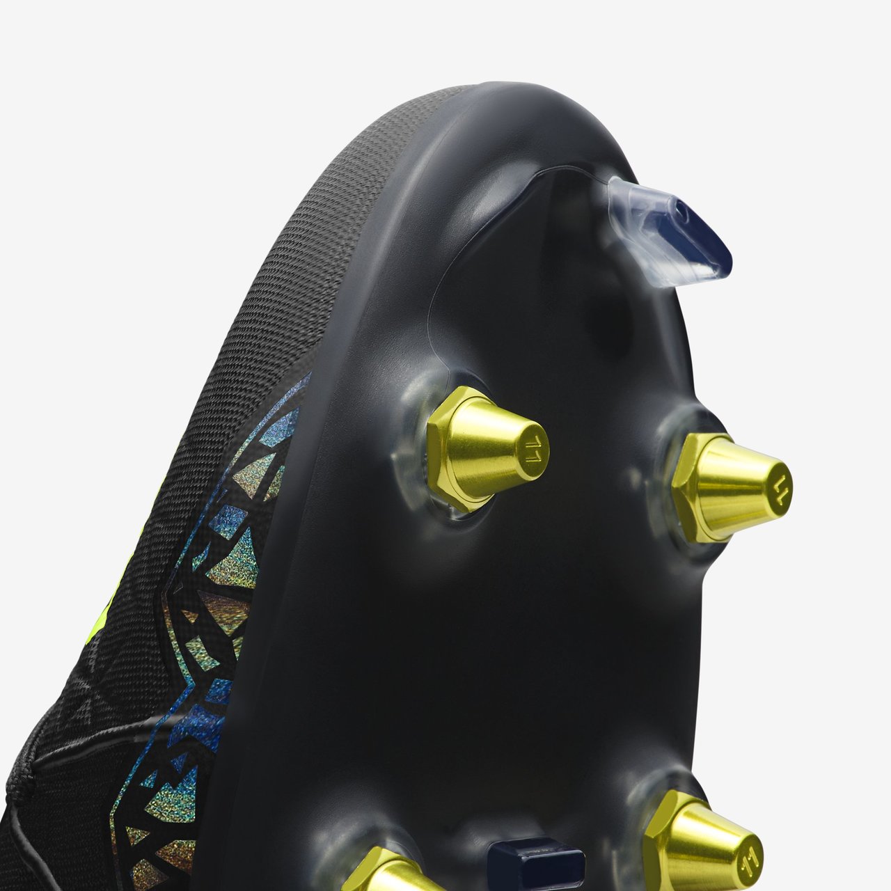 Introducing an all-new soleplate technology. On the pitch, mud can clog up your studs, making your boots heavier and impairing traction. Nike innovation has solved that problem. An innovative new material activates in moist conditions to keep mud from accumulating on the studs and plate, maintaining lightweight boots and optimal traction.