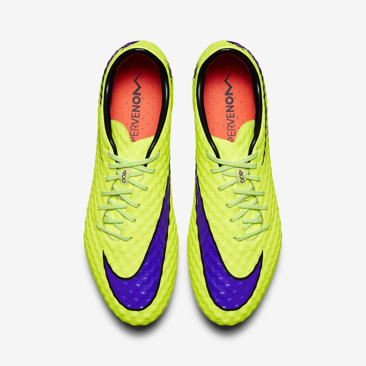 Engineered for the attacking striker, the HYPERVENOM Phantom has a split-toe plate to maximise agility and a one-piece NikeSkin upper for a barefoot-like touch on the ball.