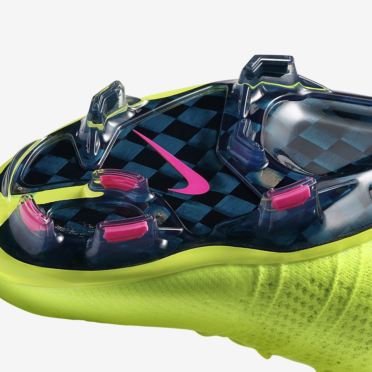 The textured knit upper combines three technologies—Flyknit, NikeSkin and All Conditions Control (ACC)—to bring your foot closer to the ball for optimal barefoot touch in dry or wet conditions.