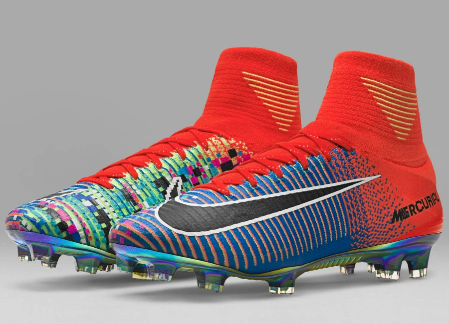 As a nod to the advancements in gaming technology, the medial side of the boot has a pixelated 16-bit graphic that transitions to high-definition on the lateral side. The EA SPORTS logo appears on the sockliner, lace and heel. A special Mercurial logo was designed just for this boot and its accompanying shoebox and bag. Much like the upper, the logo also transitions from high definition to 16-bit. A golden thread through the laces and an iridescent plate completes the design.