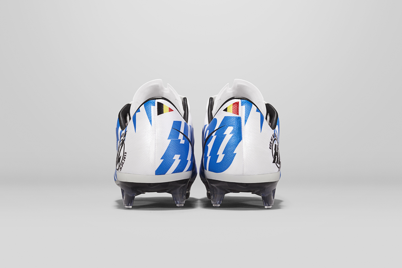 Drawing inspiration from Hazard’s trademark ability to electrify the game with pace, flair and trickery, the Nike Football design team created a white Mercurial Vapor X that illuminates through streaks of royal blue lightning bolts. On the medial side of each boot's upper the lightening bolts spell “Hazard." The additional detailing makes this Mercurial Vapor X a boot that encapsulates Hazard’s personal story, style of play and accomplishments.