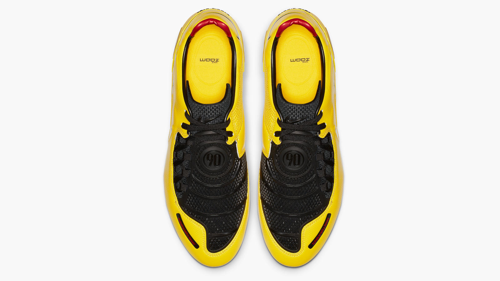 Known as the boots for ultimate accuracy and powerful shooting, the Nike T90 brings back the unique precision rings on the upper shield emblazoned with the number 90 and accompanied by the words Power – Swerve – Precision, creating a platform designed to control ball spin and optimize a solid shot.