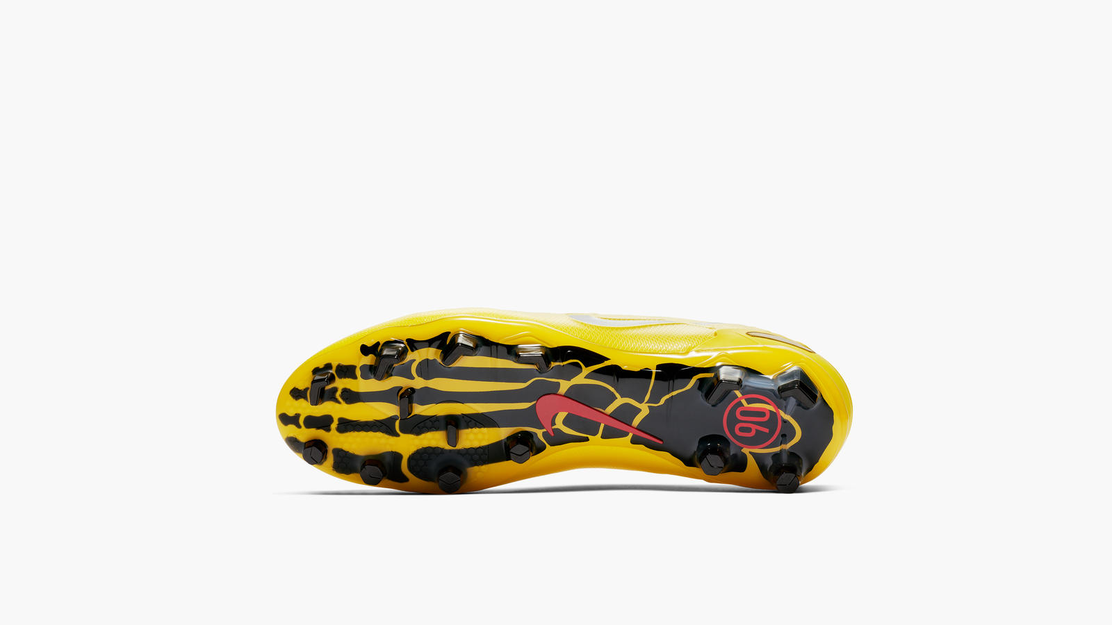 The boot has the same upper materials and construction design as the original model, introduced in 2007, including an off-center lacing system for superior ball feel. The iconic skeleton foot graphic is displayed on the soleplate, tooled into a modern underfoot chassis for a lighter and more dynamic performance. The shoe reinstates the heel Zoom Air unit, re-engineered into the underside of the sockliner, for a responsive cushioning feel.