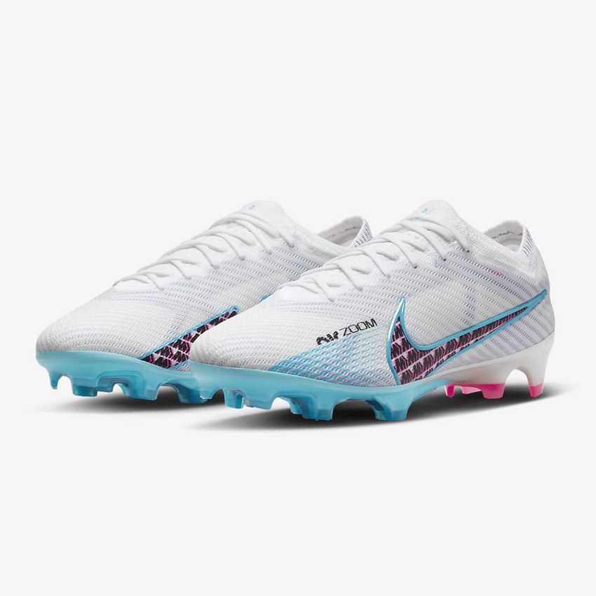 These are the new Nike Zoom Mercurial Vapor 15 Elite FG football boots in White/Pink Blast/Indigo Haze/Baltic Blue.