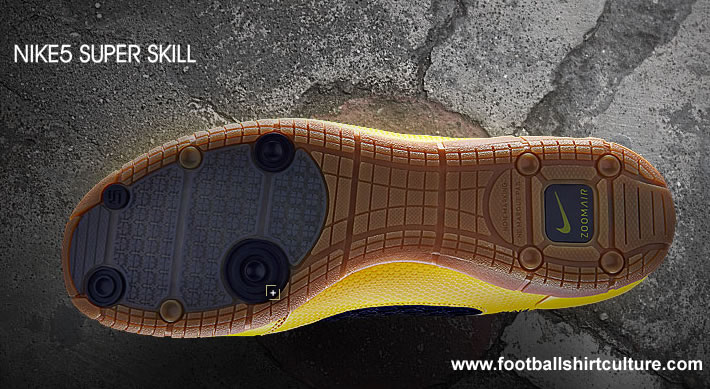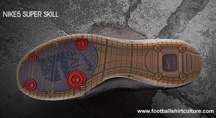 produced in 3 colour ways, the Nike5 Super Skill has some innovations such as " spin point ", which provide greater traction, and a sole with damping Zoom Air, to absorb impact.