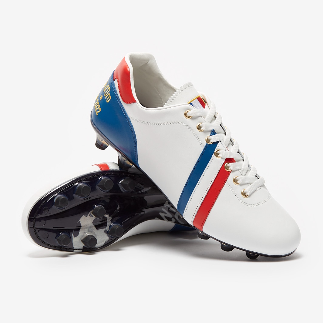 Support Les Bleus with these Pantofola d’Oro Lazzarini FG Made in Italy x France Edition football boots in White/Blue/Red, a special edition of the classic leather boot in national team colours.