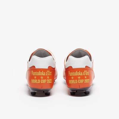 These are the new Pantofola d’Oro Lazzarini FG Made in Italy x Netherlands Edition football boots in Orange/White, a special edition of the classic leather boot in national team colours.