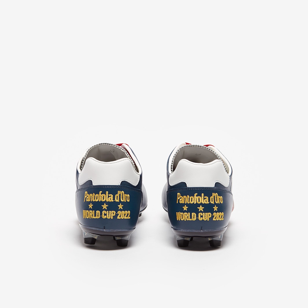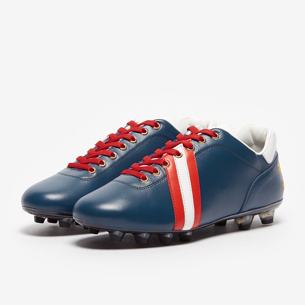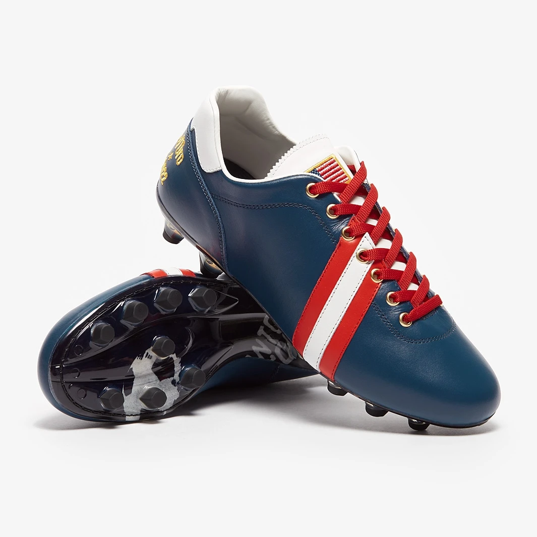 These are the Pantofola d’Oro Lazzarini FG Made in Italy x USA Edition football boots in Navy/White/Red, a special edition of the classic leather boot in national team colours.