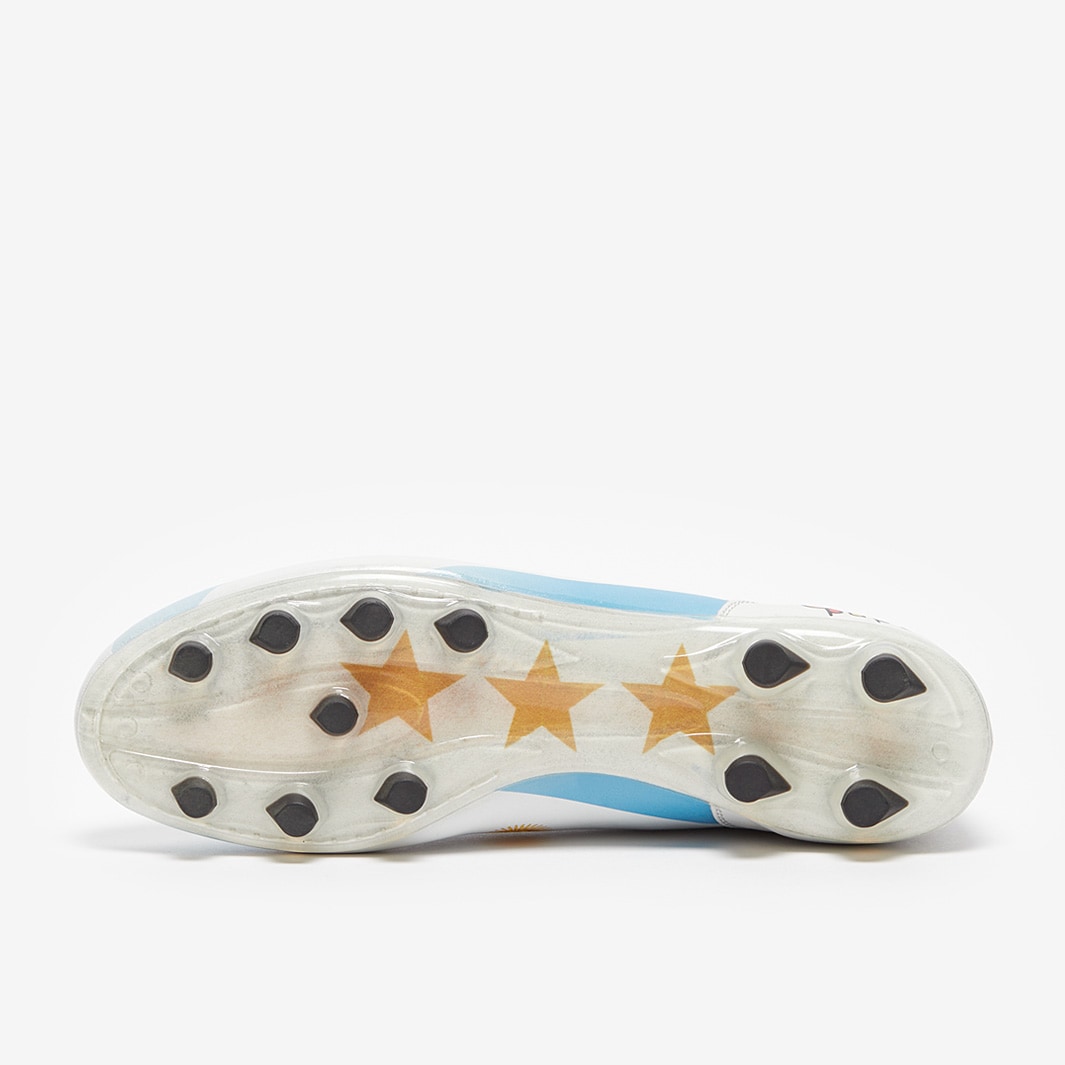These boots pay homage to Javier Zanetti's beloved Argentina national team with a special edition design inspired by their iconic home shirt. Sporting the classic Albiceleste colours and the sun emblem from the national flag, they exude Argentine pride.