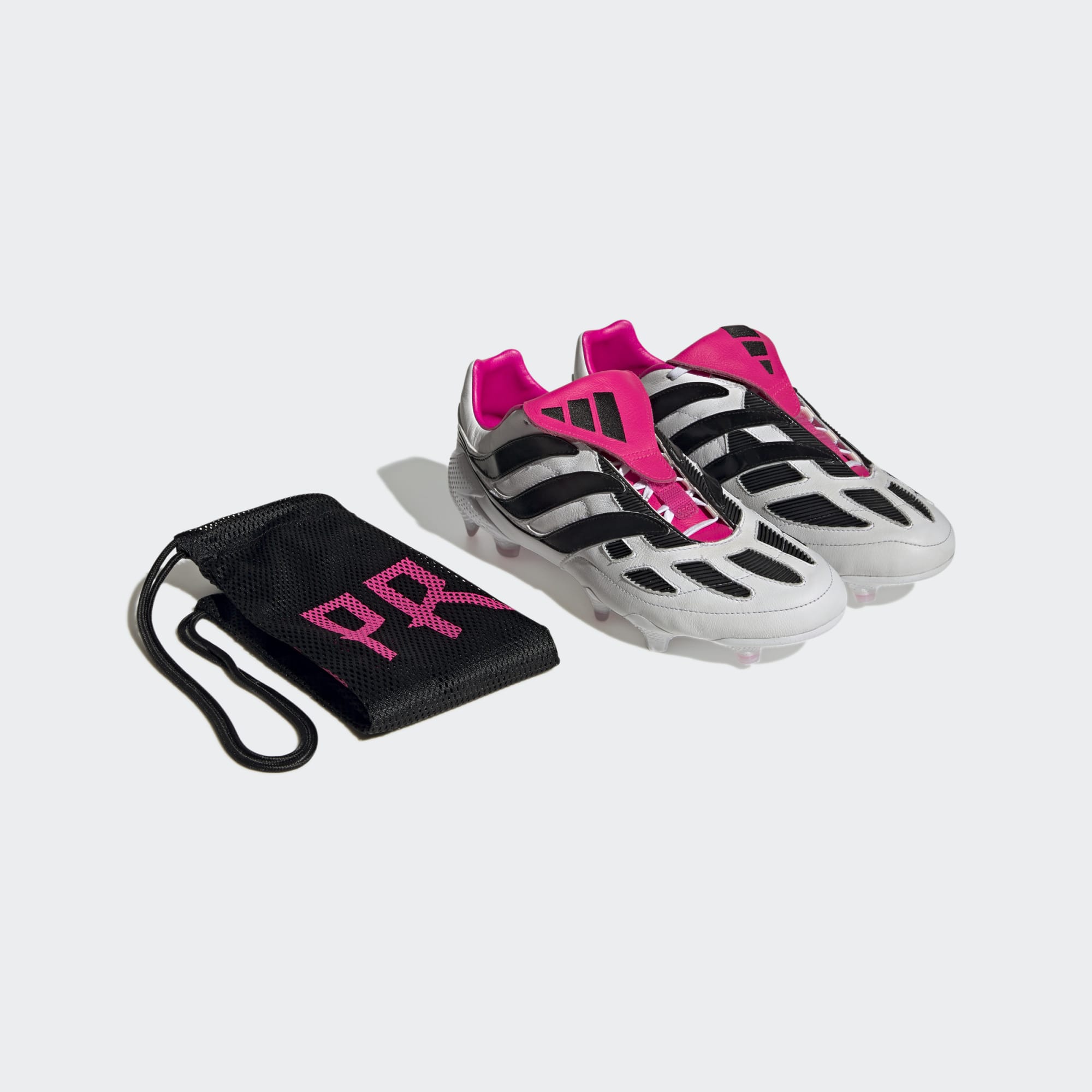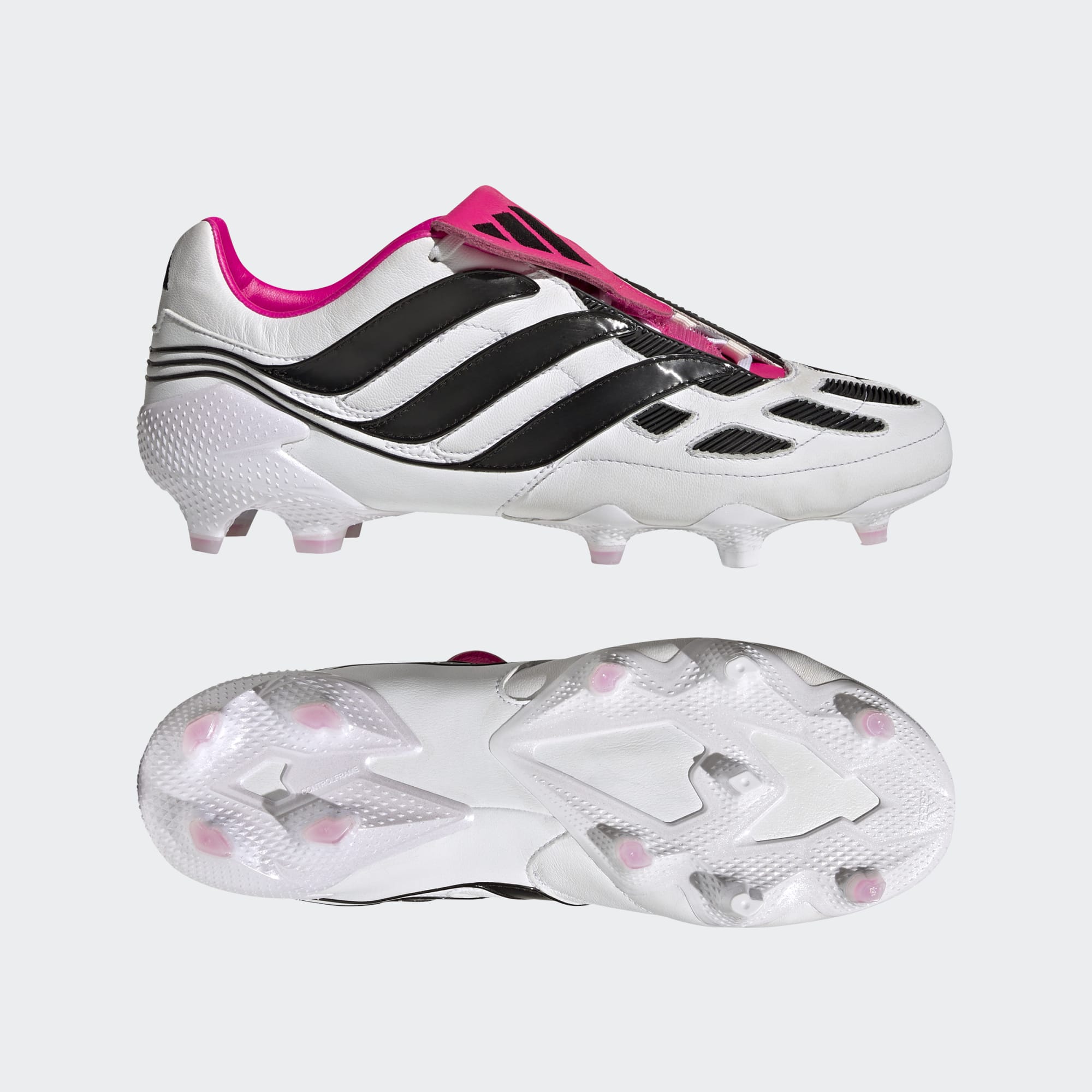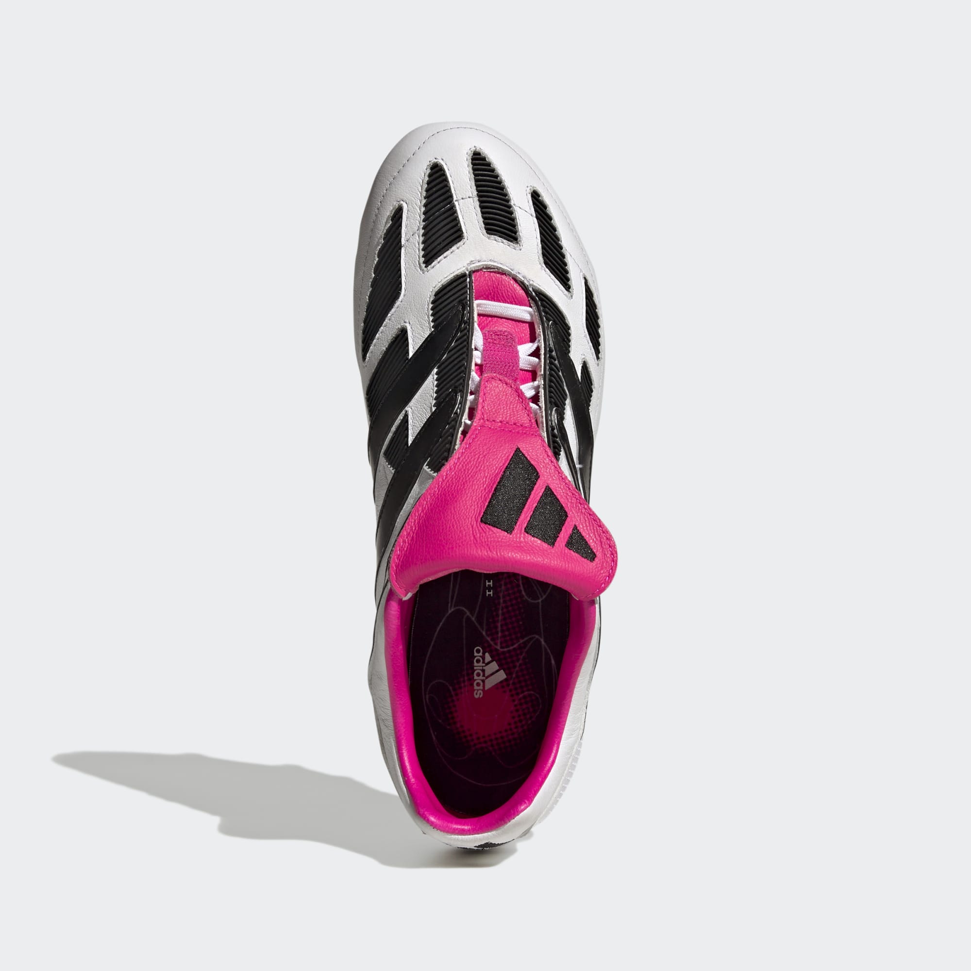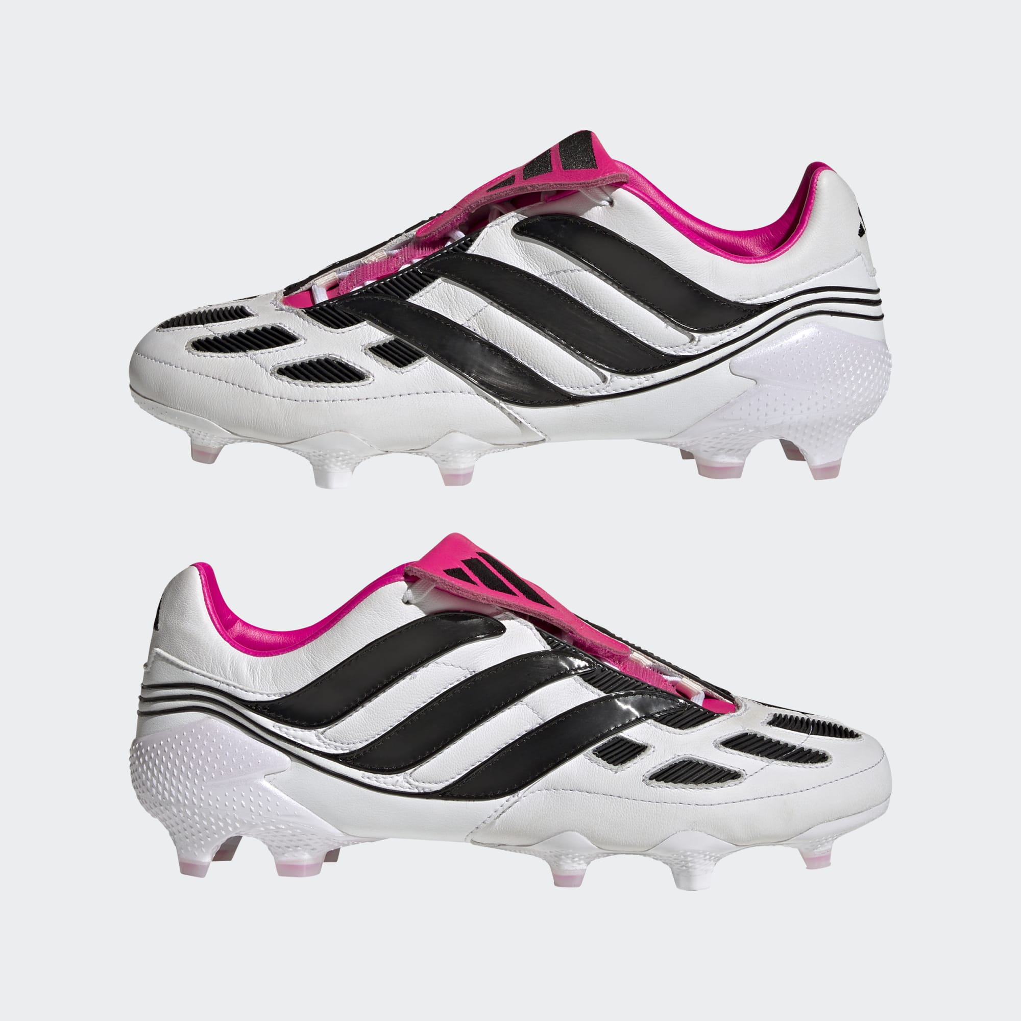 First launched in 2000, the Precision is targeting a return in 2023. The soft cow leather upper on these adidas Predator Precision+ football boots in Cloud White/Core Black/Team Shock Pink has all the iconic elements of the original, including its fold-over tongue and stitched-on rubber forefoot pads.