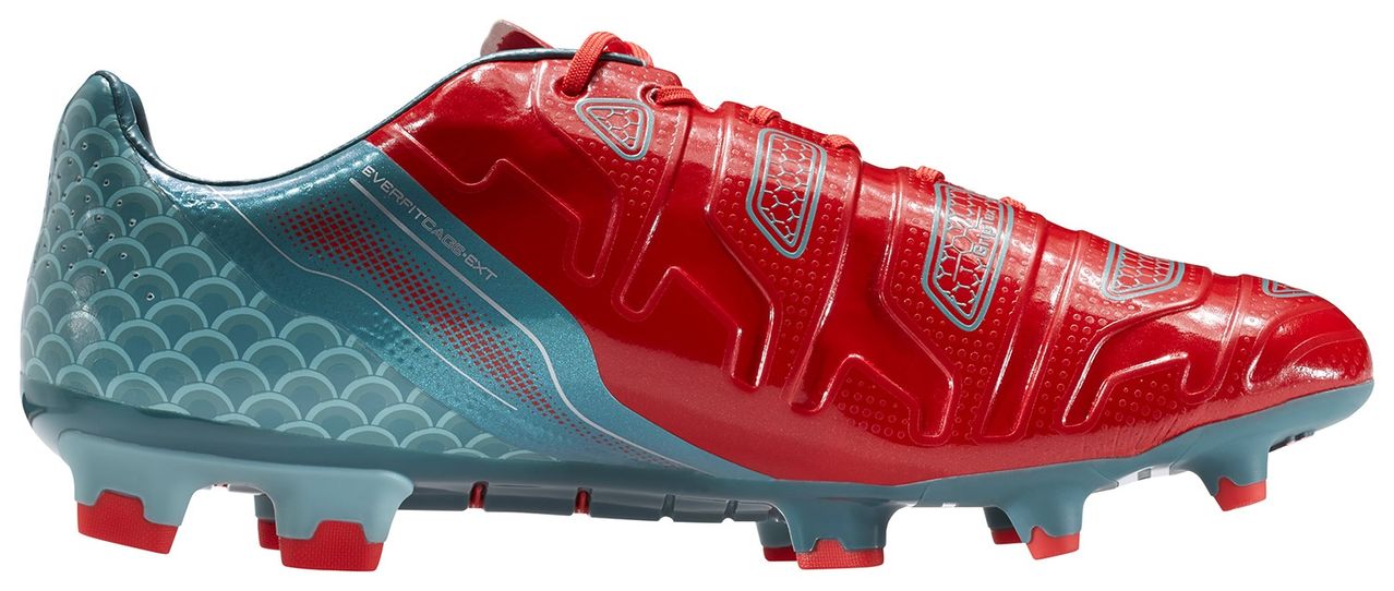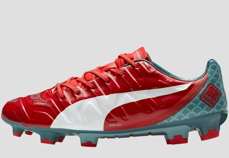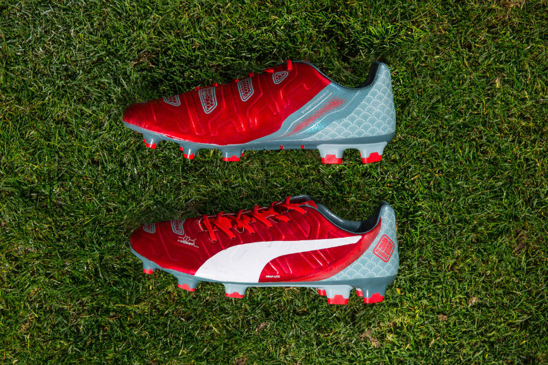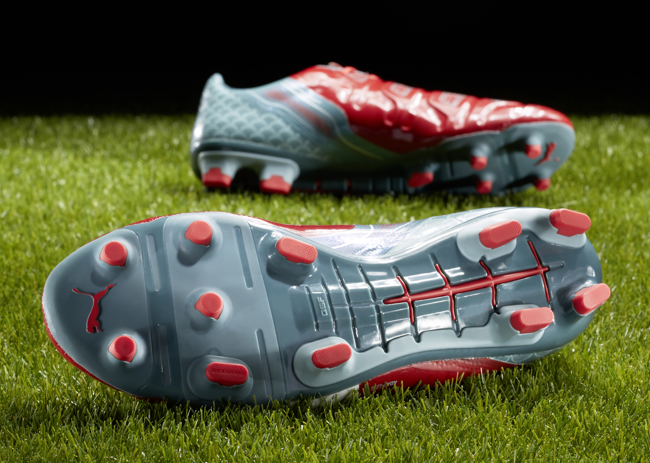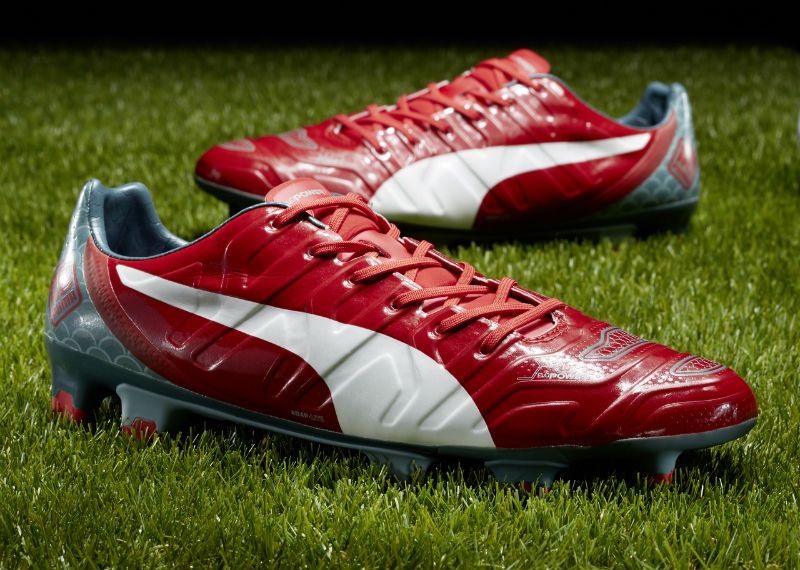 Puma introduced the latest evoPOWER 1.2 football boot. The high risk red and sea pine coloured boot will be exclusively launched on pitch by Cesc Fàbregas.