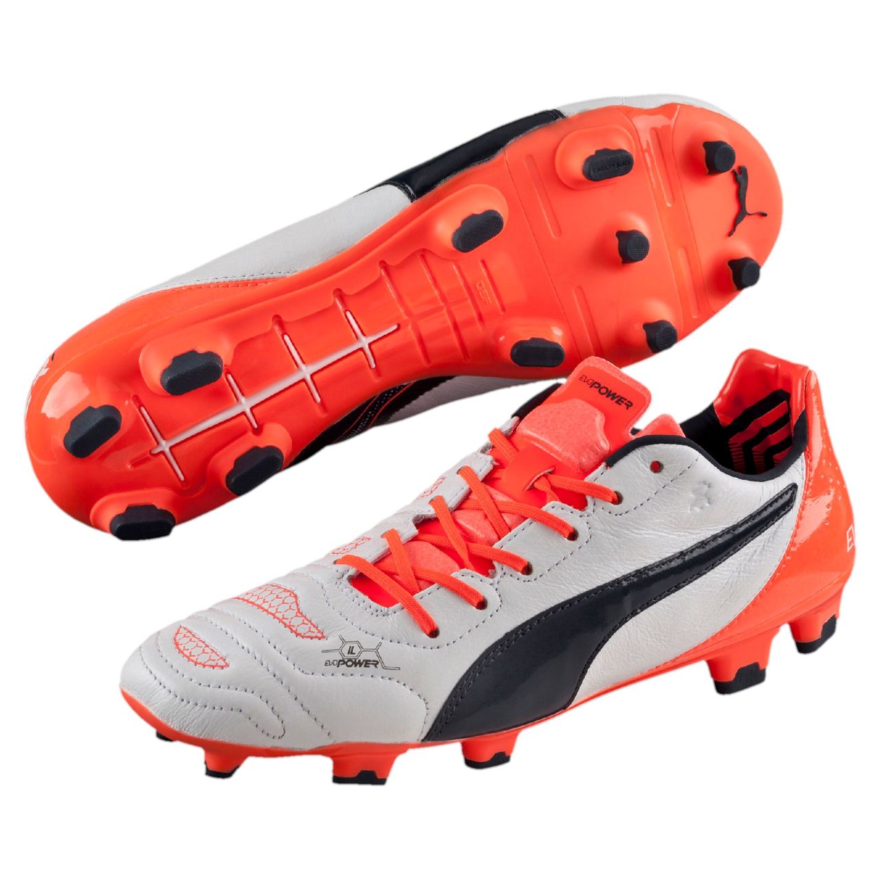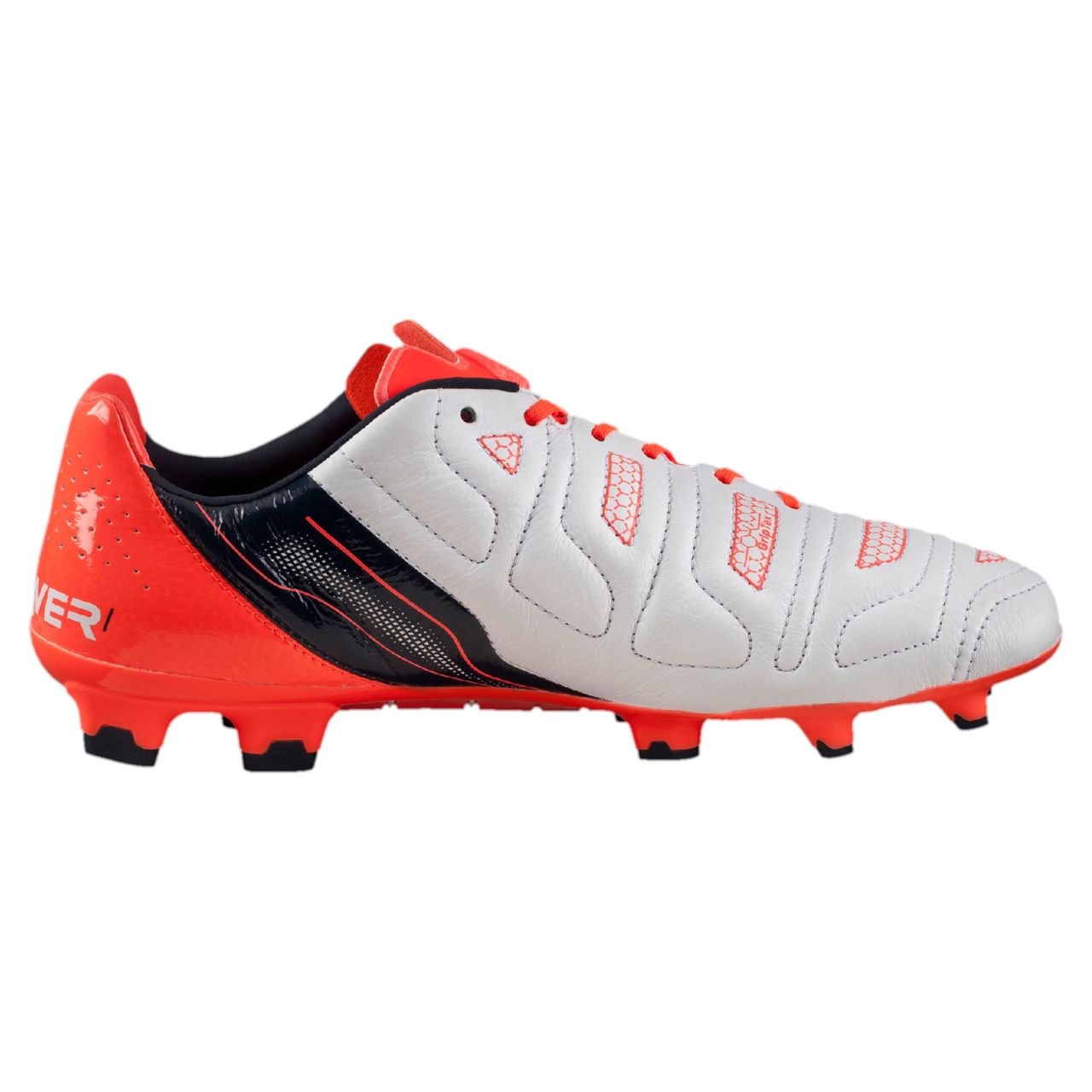 Puma evoPOWER football boots are designed and developed to optimise kicking velocity and accuracy on firm ground. This special evoPOWER 1.2 L features soft premium leather for excellent touch and a minimum weight. GripTex has been applied for enhanced ball control. The anatomically engineered outsole with G.S.F. technology allows the foot to bend similar to a barefoot kicking motion, thus ensuring optimum power delivery to the ball. The stud configuration offers an optimal mix between stability and manoeuvrability.