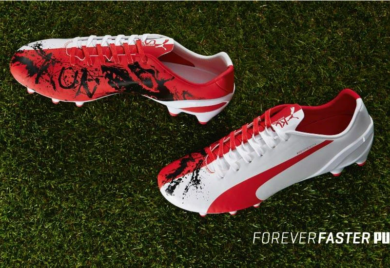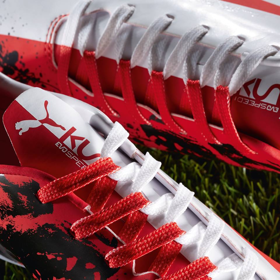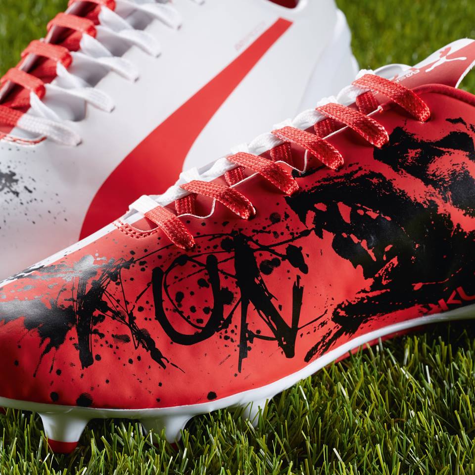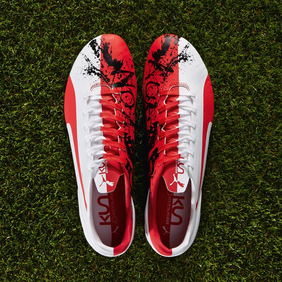 Customised by Puma for Sergio Agüero, these limited edition evoSPEED 1.3 Kun Tricks football boots feature the red and white colours of his first club, Independiente, where he became the youngest player to make his debut in a first division game in his native Argentina at the age of 15.