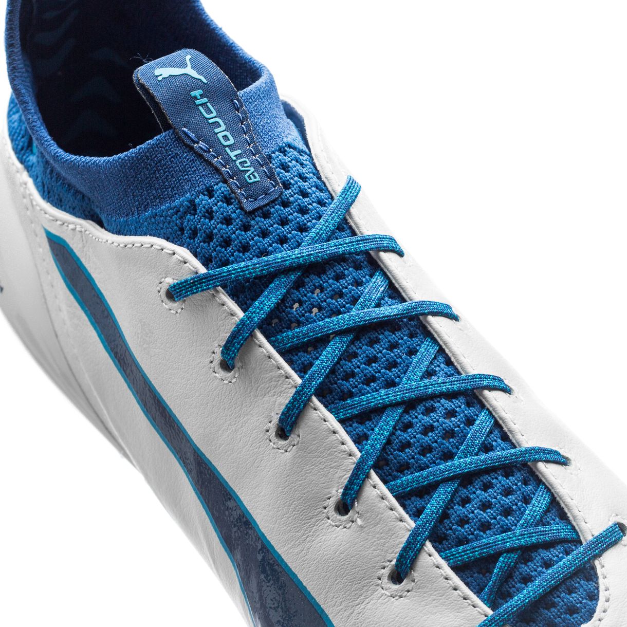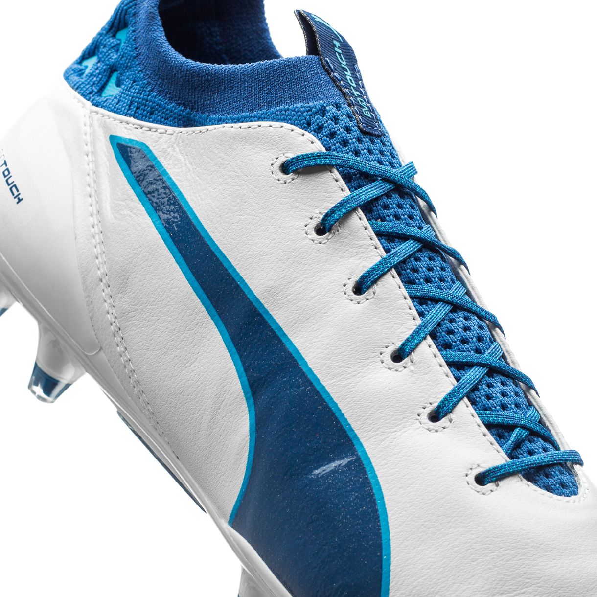 The Puma evoTOUCH Pro FG football boot is designed with an unique K-TOUCH upper, built for pure control. The upper is a fusion of an underlying woven evoKNIT sock and ultra thin kangaroo leather.