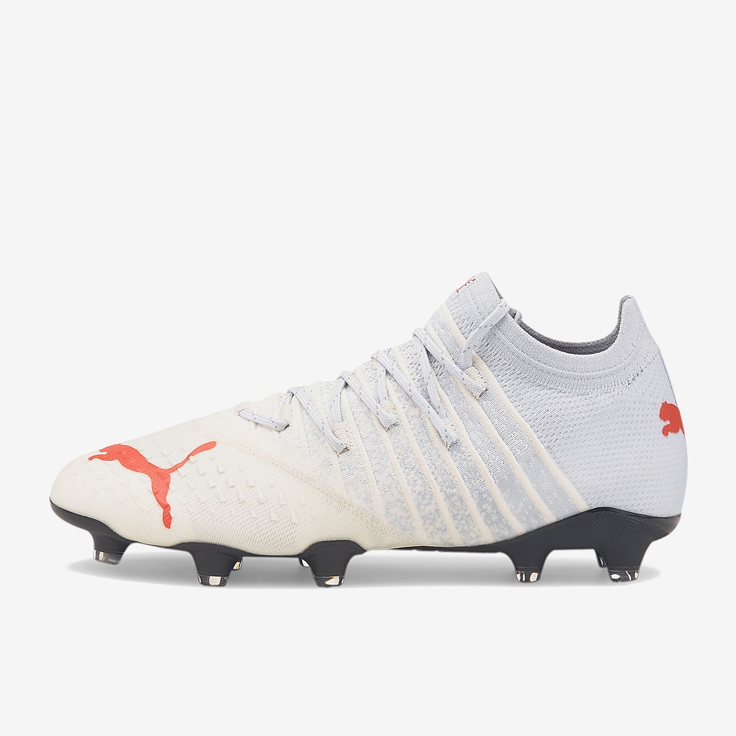 Make a play for sustainability wearing PUMA Future Z 1.3 First Mile FG/AG football boots in Pristine/Firelight/Arctic Ice.