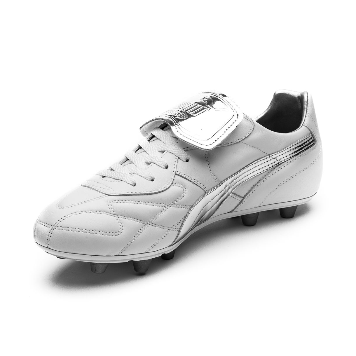 A reinforced heel delivers protection and stability while a soft ankle lining ensures a comfortable fit. Central lacing and the trademark fold over tongue only add to the classic look of the Puma King.