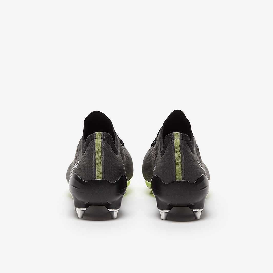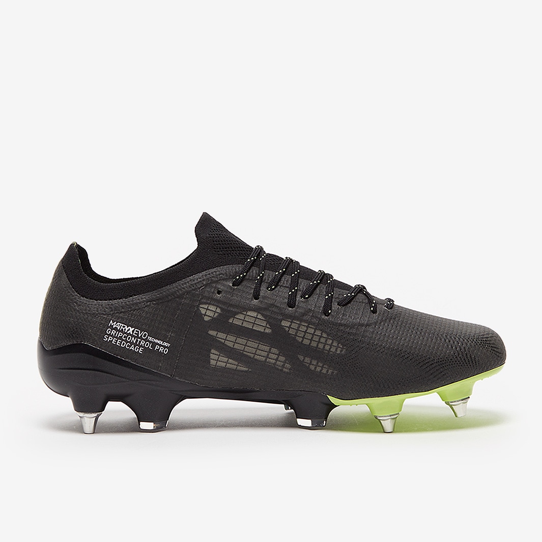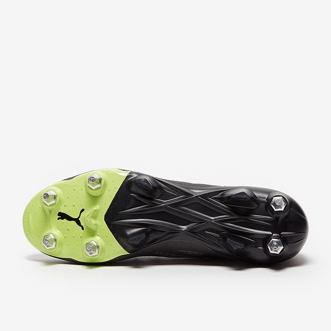 These are the PUMA Ultra 1.4 MxSG football boots in Puma Black/Puma White/Fizzy Light, featuring new cutouts on the ULTRACut upper for an even more lightweight feel.