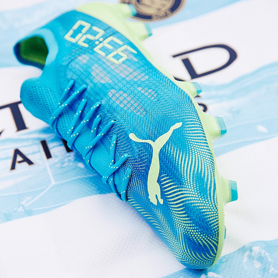 Puma launched the Ultra 1.4 x 93:20 Limited Edition FG/AG football boots in Light Blue, a limited edition of the Ultra celebrating the 10th anniversary of Aguero’s last-gasp, title-winning goal.