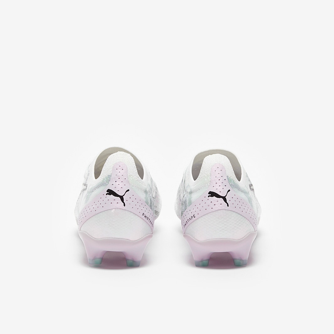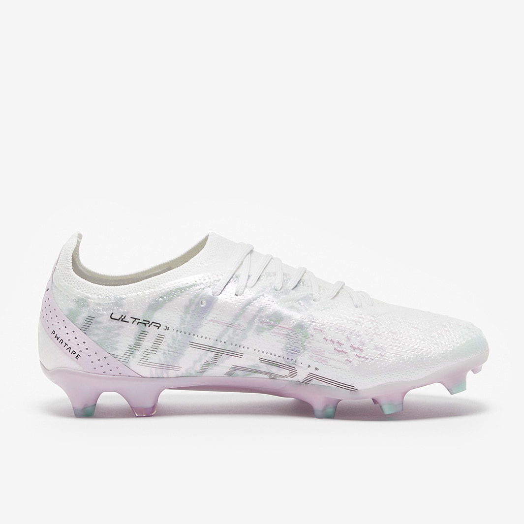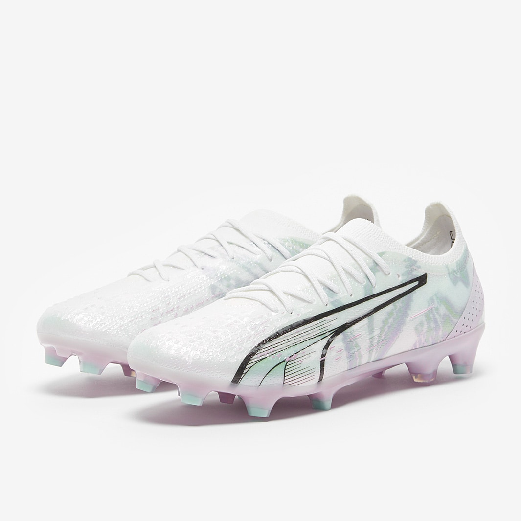 These are the PUMA Ultra Ultimate Brilliance FG/AG football boots in Puma White/Puma Black/Spring Lavender.