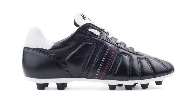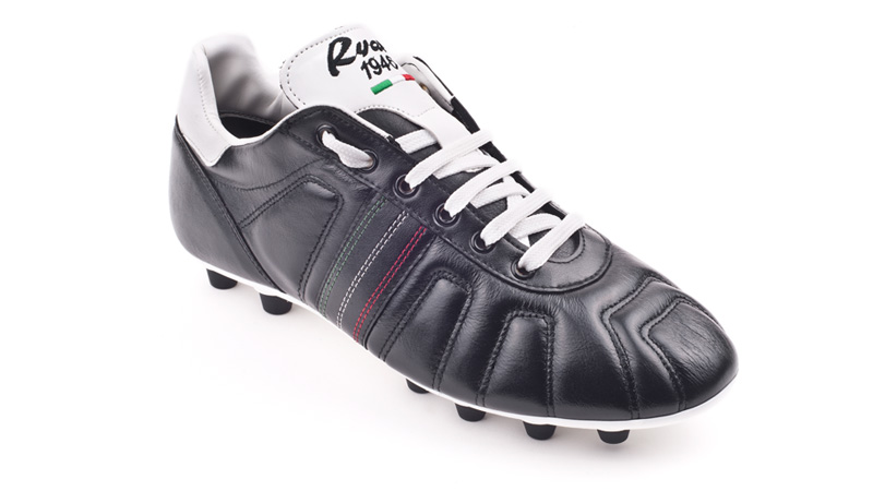 The Ryal Europa is a handmade football boot with an upper of black K-leather and has a PU-sole with fixed studs. 100% made in Italy