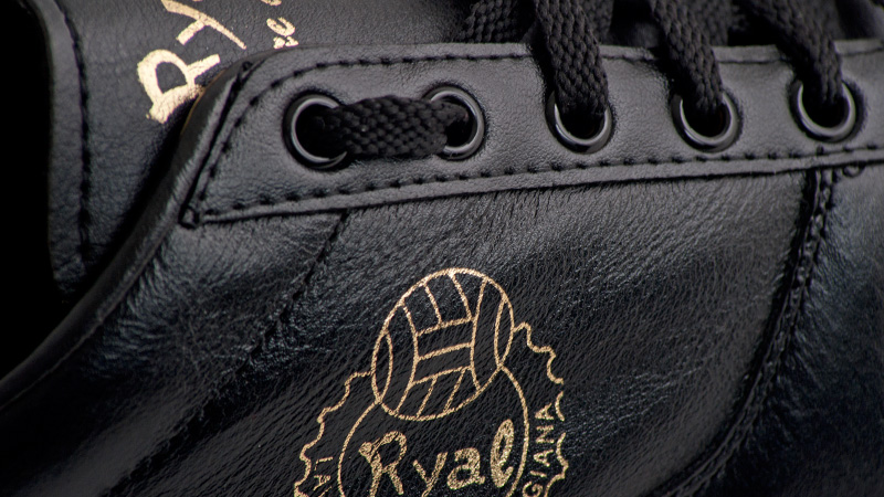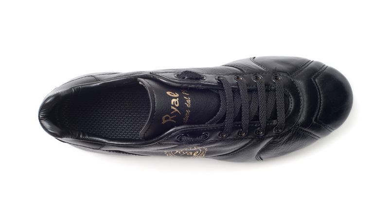 The Ryal La Storia is a handmade football boot with an upper of black K-leather and has a PU-sole with fixed studs. 100% made in Italy