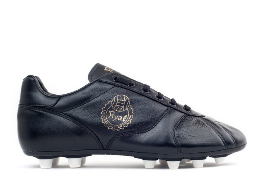 The Ryal La Storia is a handmade football boot with an upper of black K-leather and has a PU-sole with fixed studs. 100% made in Italy