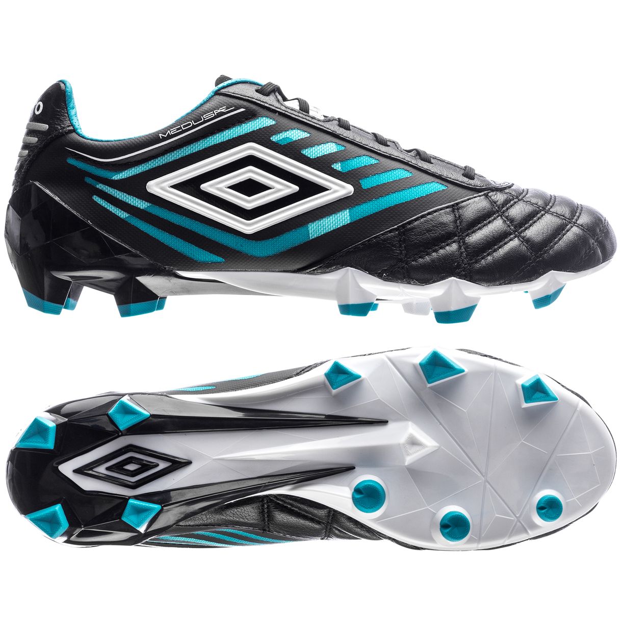 The Umbro Medusae Pro HG football boot is designed with a front part made from premium leather, that fits smoothly on your feet giving you the ultimate touch. The mid foot and a part of the back is made from mesh, for low weight and added support. On the heel a piece of leather ensures higher comfort, while the anatomically designed heel top reduces pressure points.
