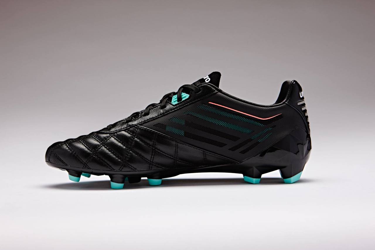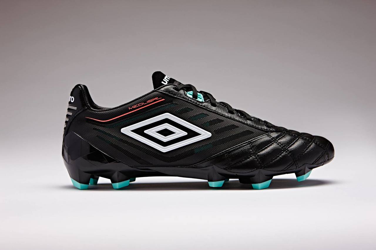 The Medusae is built on Umbro’s speed outsole, also featured on the Velocita, which is constructed for speed in all directions, improving agility by mimicking natural foot motion and traction with a unique Umbro stud configuration. Across the mid foot area (lateral and medial), leather has been replaced with a performance mesh cage, which allows for a dramatic weight reduction. To enhance stability and durability the mesh is covered with a thin layer of TPU.