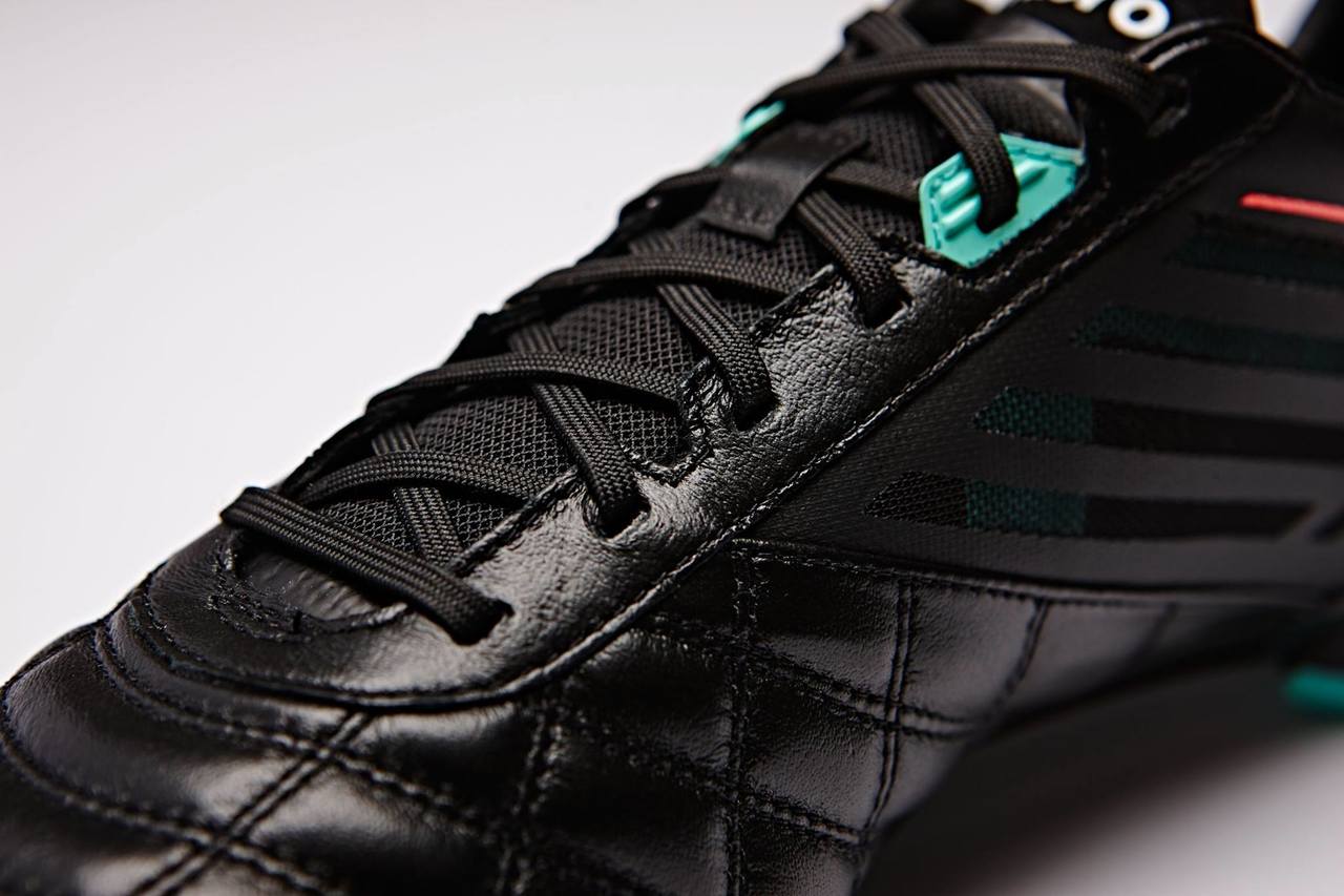On the inside of the mesh performance cage, a built-in TPU A-Frame runs to the top of the eyelet stay, locking the foot into position and providing optimum stability. The heel tab is dipped for more comfort and cradled in an external heel counter – offering an extra layer of protection against impact during the game. Above this, soft leather has been used to allow the boot to mould to the shape of the foot and provide a fantastic fit. The perforated sockliner is made from pre-moulded EVA for extra breathability and comfort.