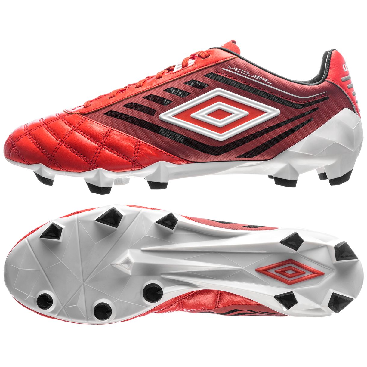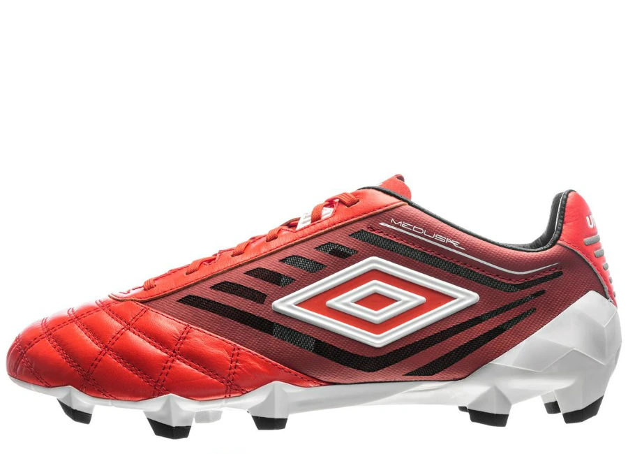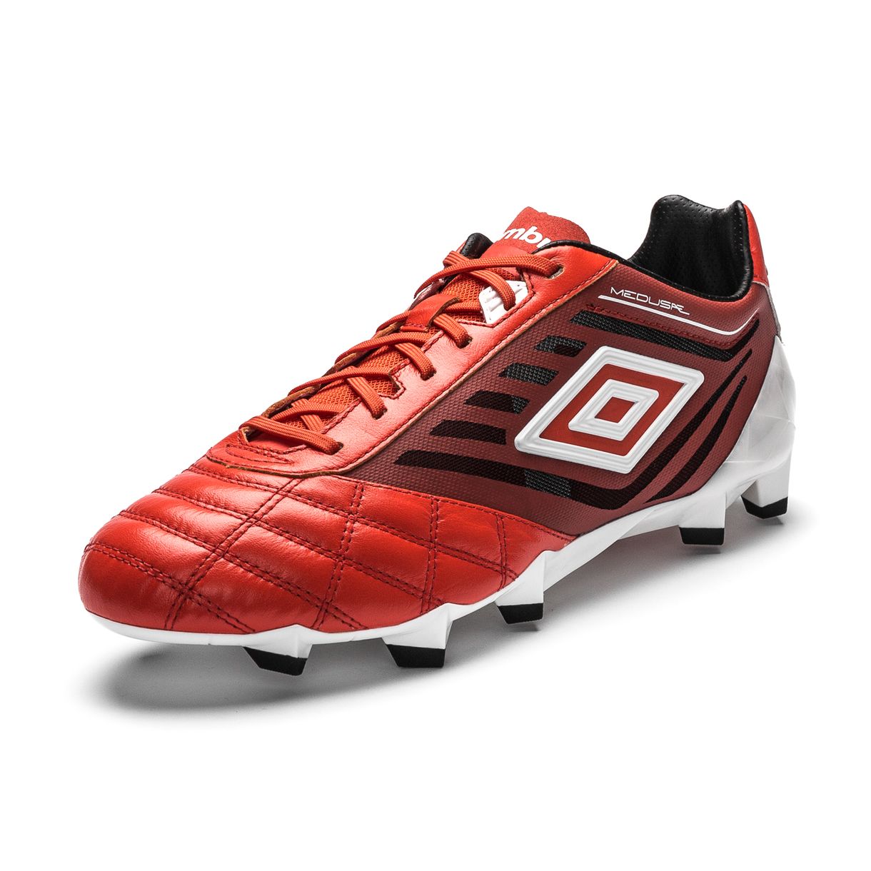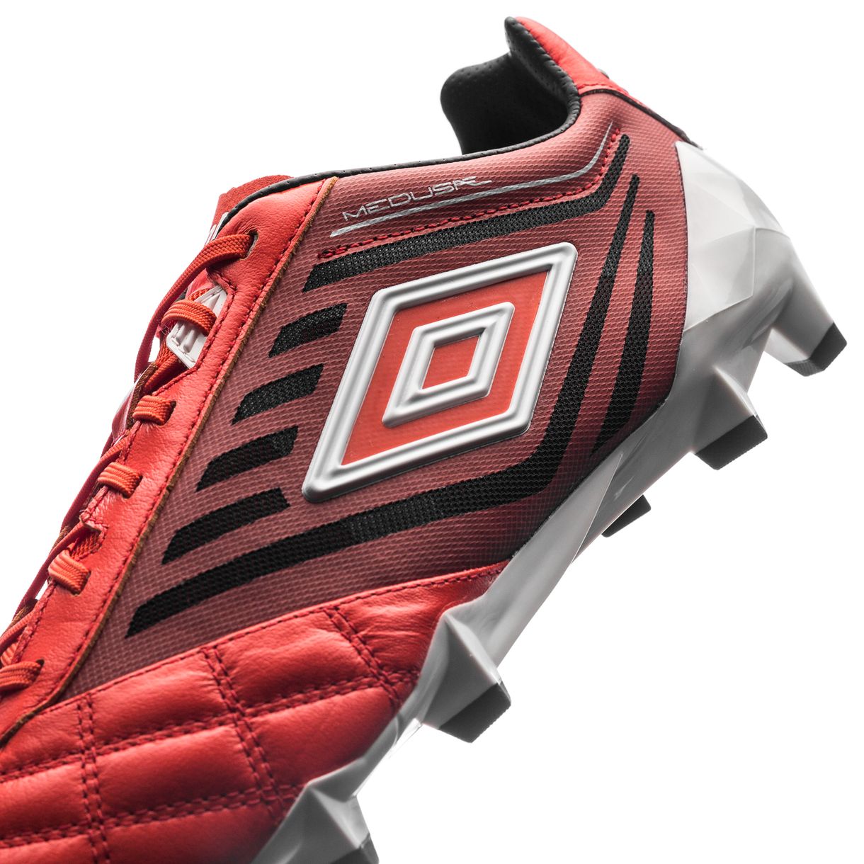 The Umbro Medusae Pro HG football boot is designed with a front part made from premium leather, that fits smoothly on your feet giving you the ultimate touch. The mid foot and a part of the back is made from mesh, for low weight and added support. On the heel a piece of leather ensures higher comfort, while the anatomically designed heel top reduces pressure points.