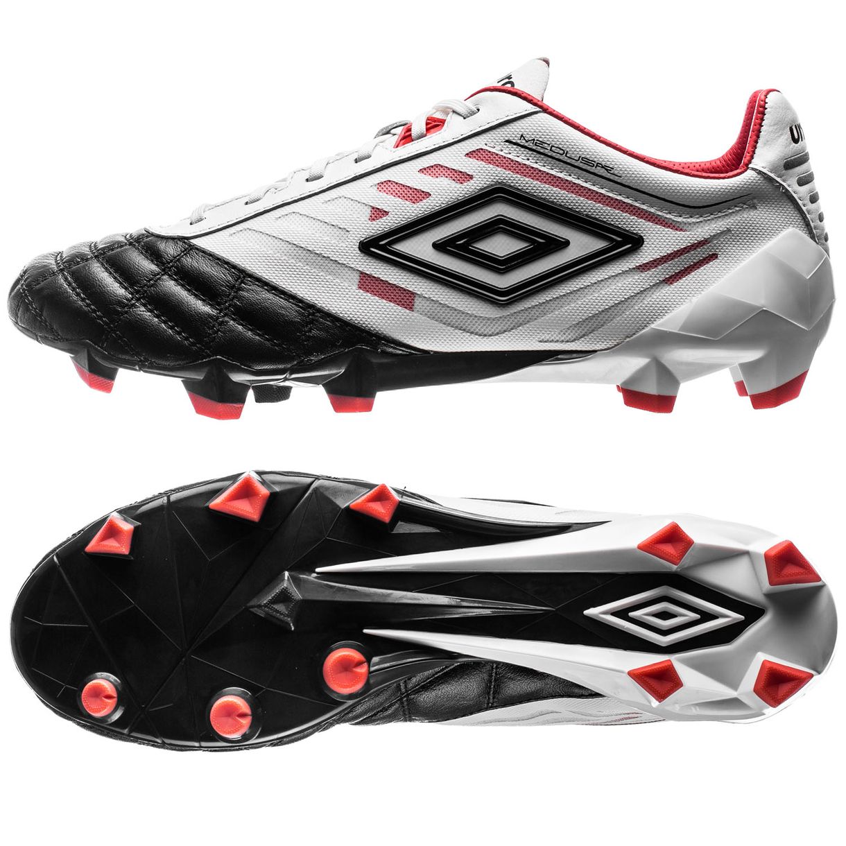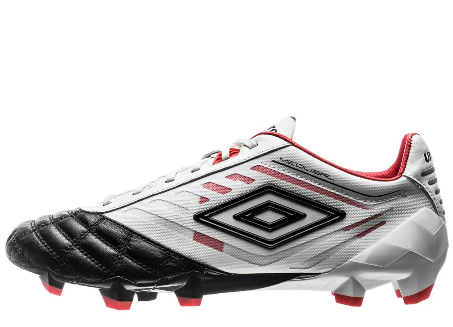 The Umbro Medusae Pro HG - White / Black / Grenadine is the result and a blend of Umbro’s control- and speed boots, giving you the best of everything. A football boot for the player that wants to dominate the pitch with a touch out of this world and outrun the defenders.
