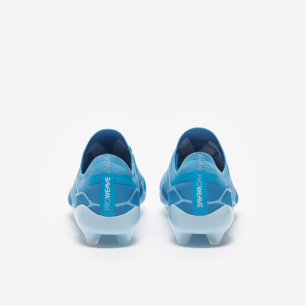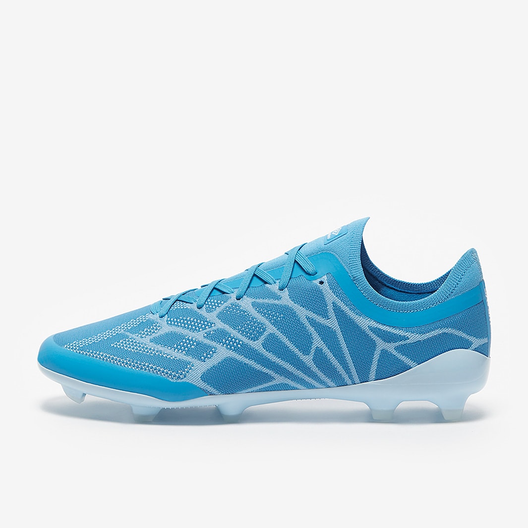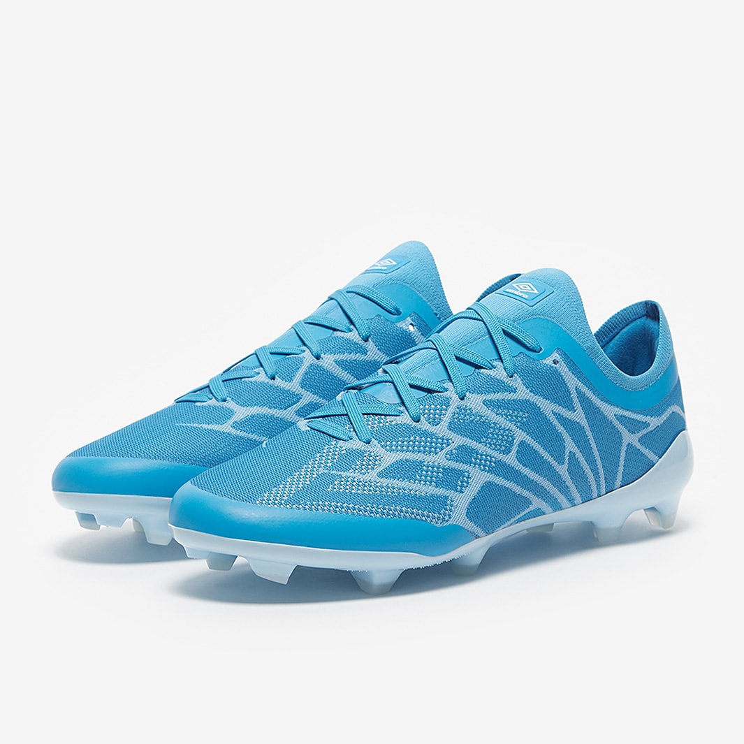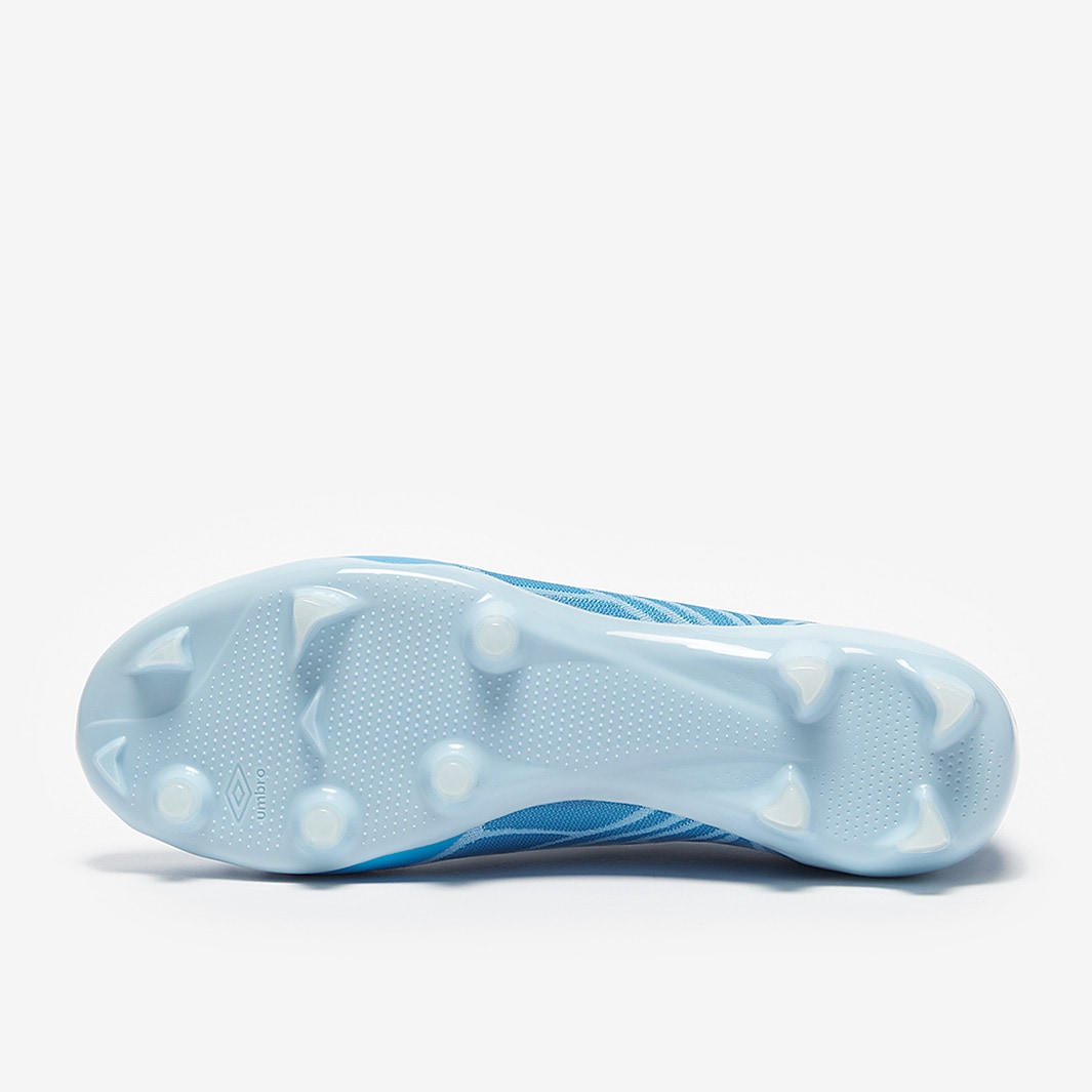 These are the new Umbro Velocita Alchemist Pro FG football boots in Malibu Blue/White/Clear Sky, featuring a streamlined design built for fast, attacking play.