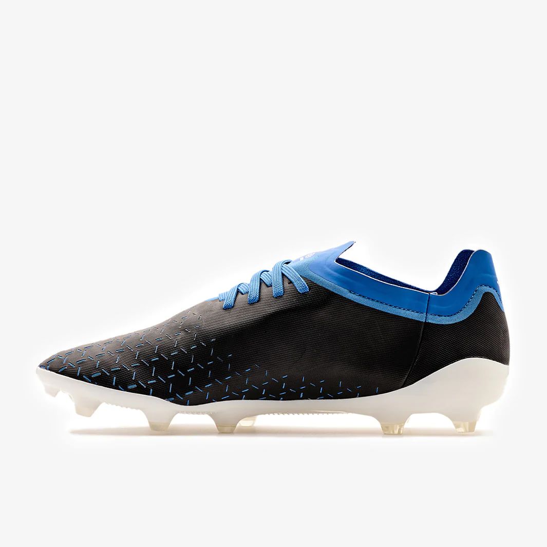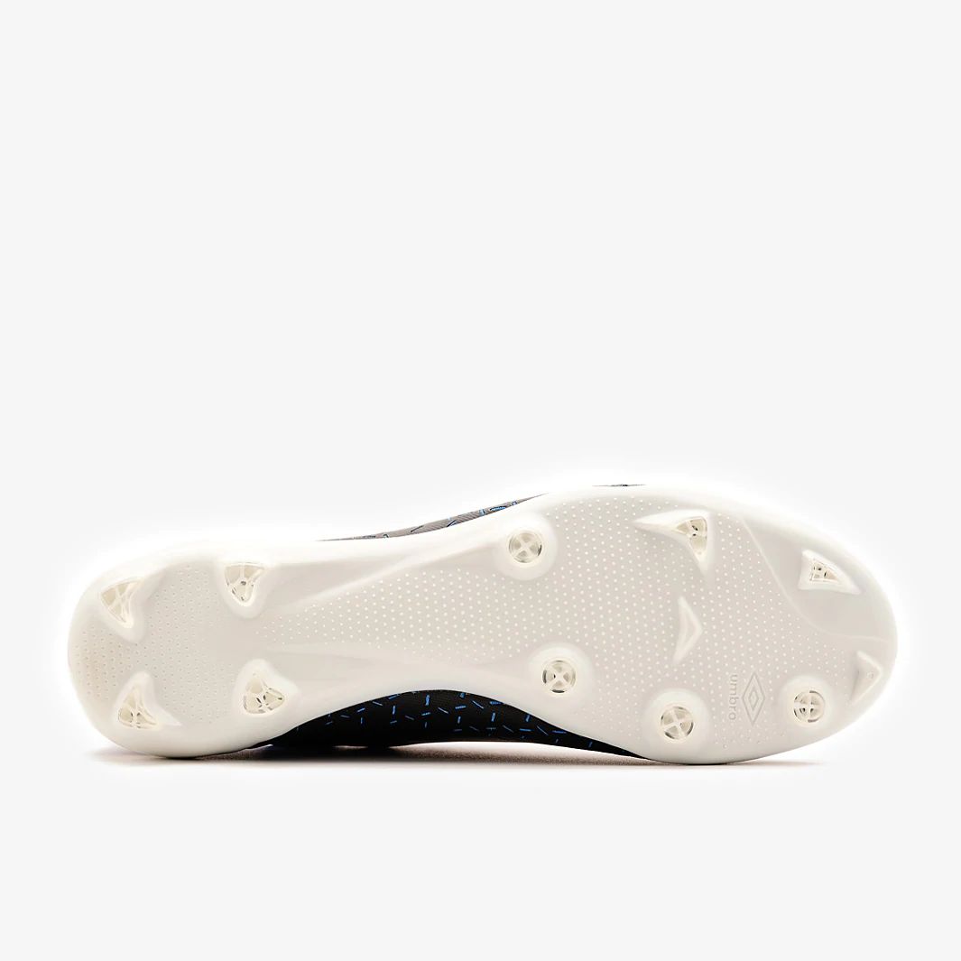 Play faster with Umbro Velocita V Pro FG football boots in Black/White/Blue, designed to adapt to the natural movements of your foot for maximum speed in every direction.