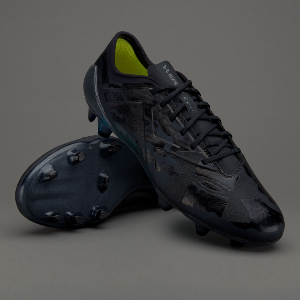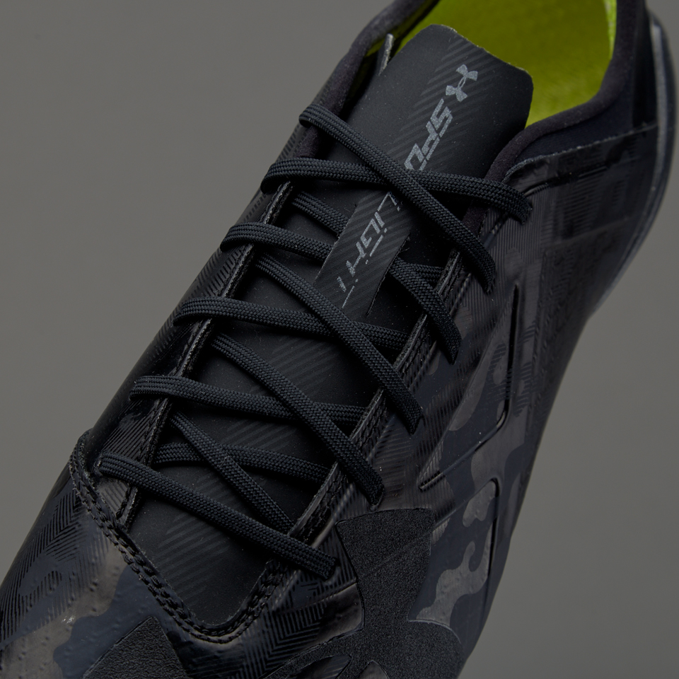 Designed for offensive players, the Under Armour Spotlight LE FG Football Boot features a lightweight, synthetic upper and an asymmetrical construction for a larger striking surface.