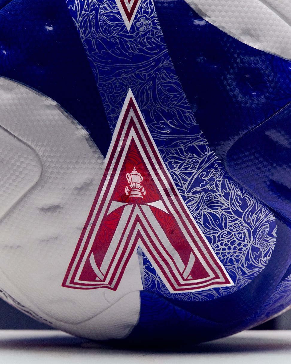 Visually, the 2025/26 edition draws inspiration from the Emirates FA Cup trophy itself. The intricate patterns seen on the silverware’s surface are reinterpreted as floral engravings across the blue and white panels, symbolising the heritage of the competition. Prominent red Delta chevrons dominate the upper surface, echoing Mitre’s signature identity, with the Emirates FA Cup logo placed below the brand mark.
