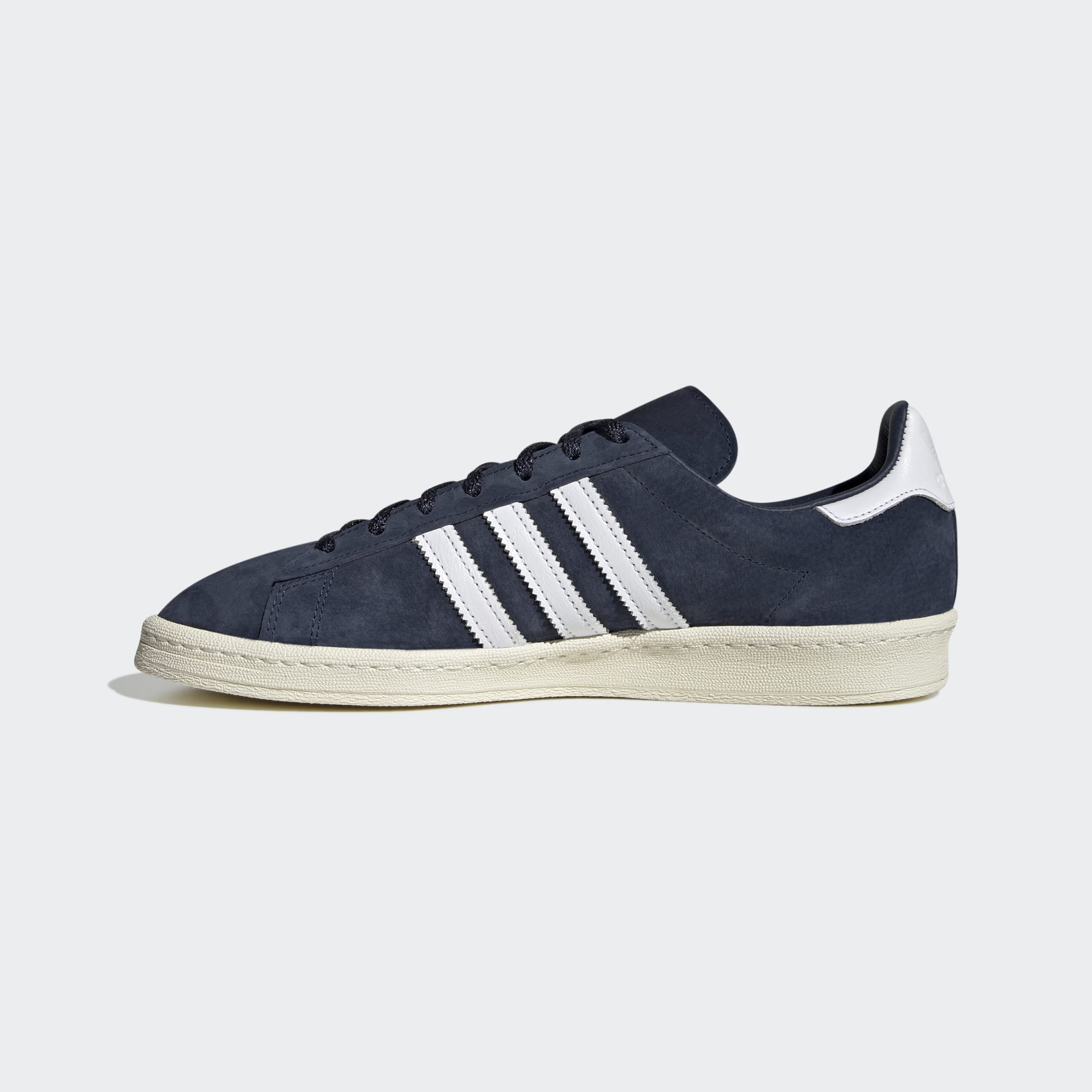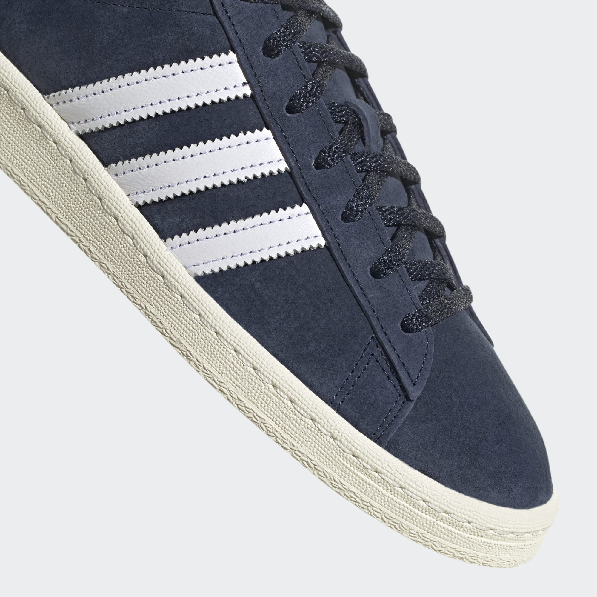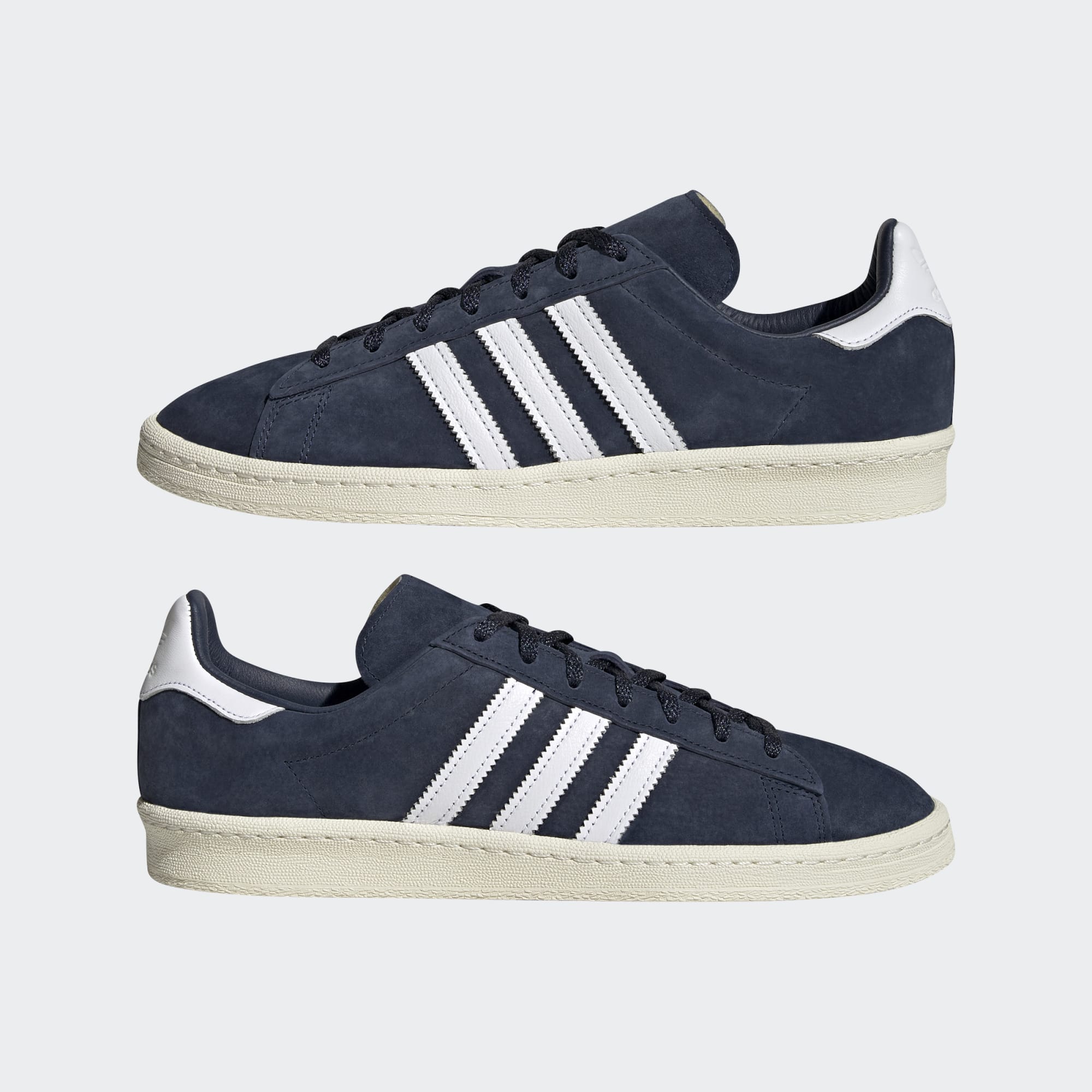 This latest version of the adidas Campus 80s Shoes in Collegiate Navy/Cloud White/Off White stays true to the classic design.