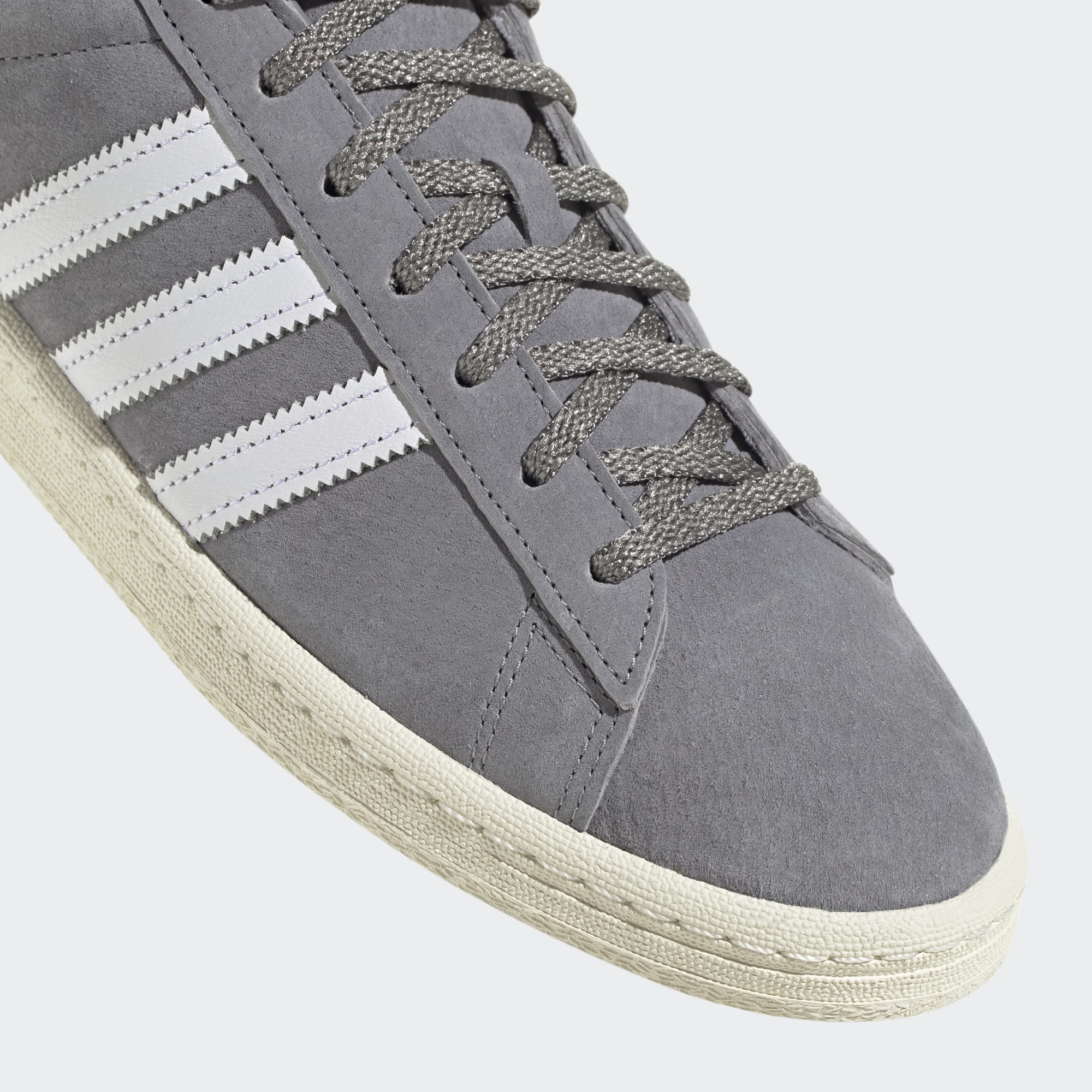 This latest version of the adidas Campus 80s Shoes in Grey/Cloud White/Off White stays true to the original design.