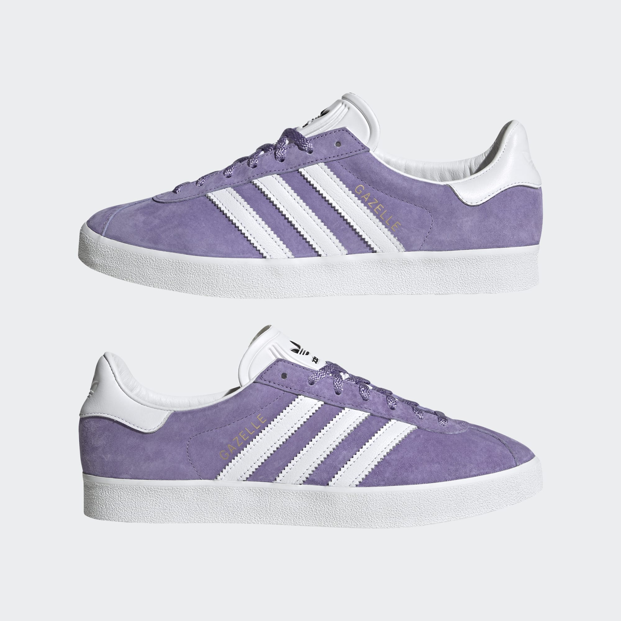 The latest iteration of the shoe, the Gazelle 85, pays homage to a lesser-known version from 1985. This new version in Magic Lilac/Cloud White/Core Black features a sleek shape, updated toe overlay, and elevated foxing tape.