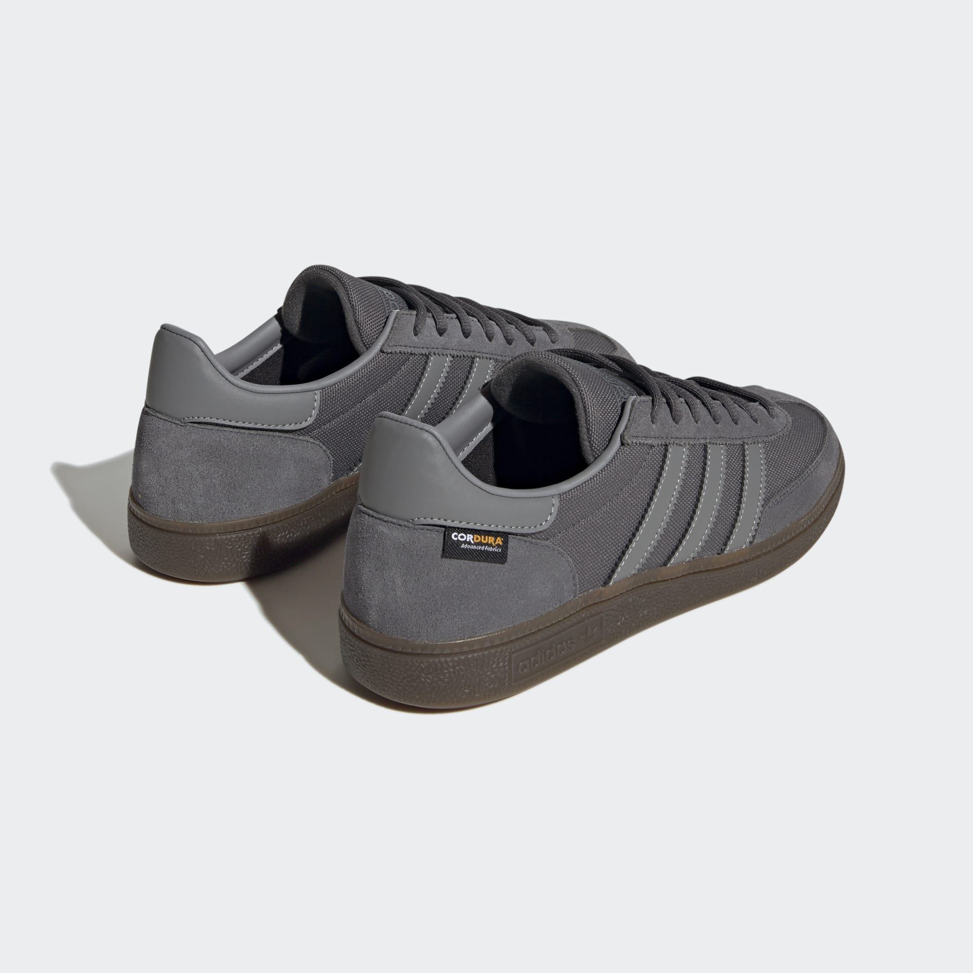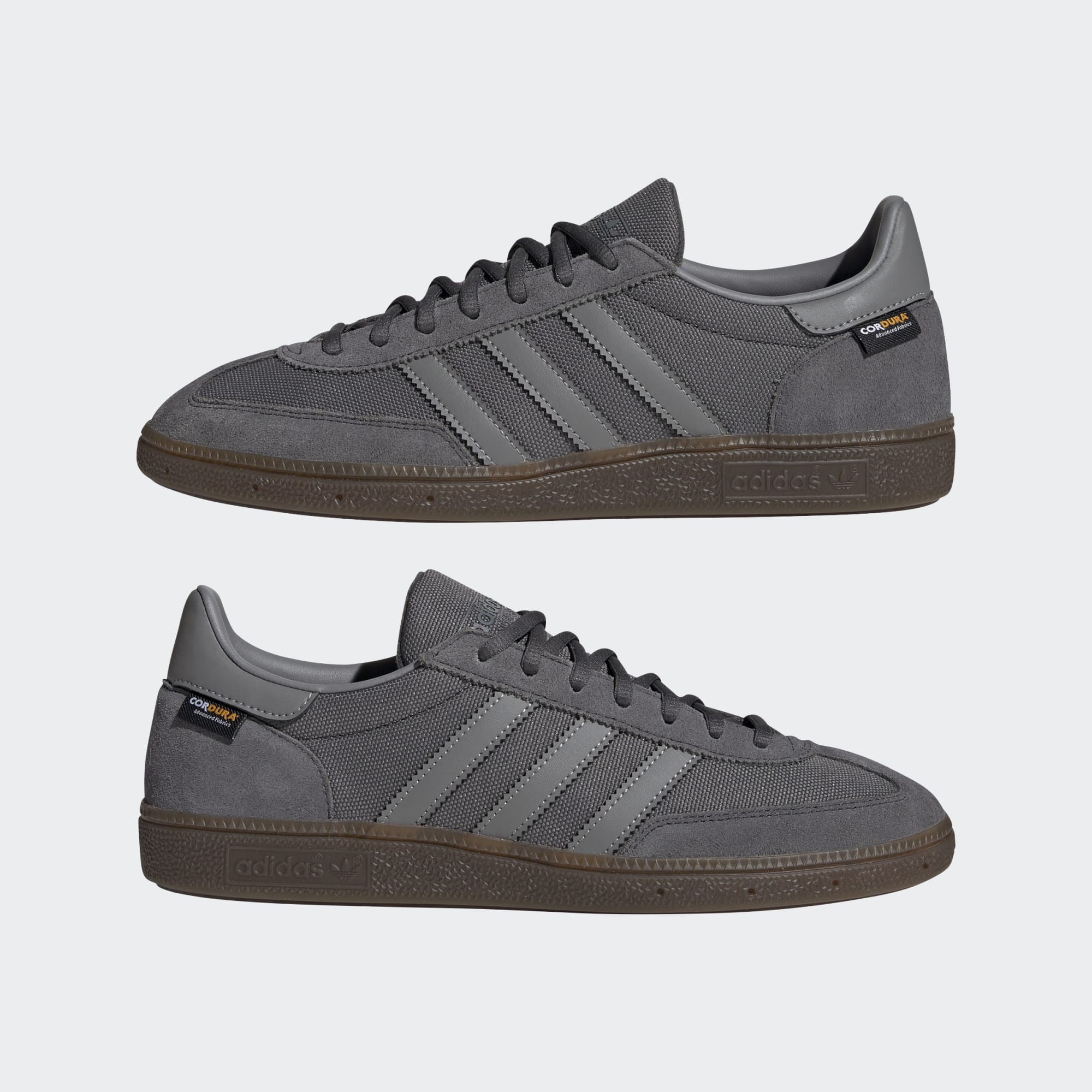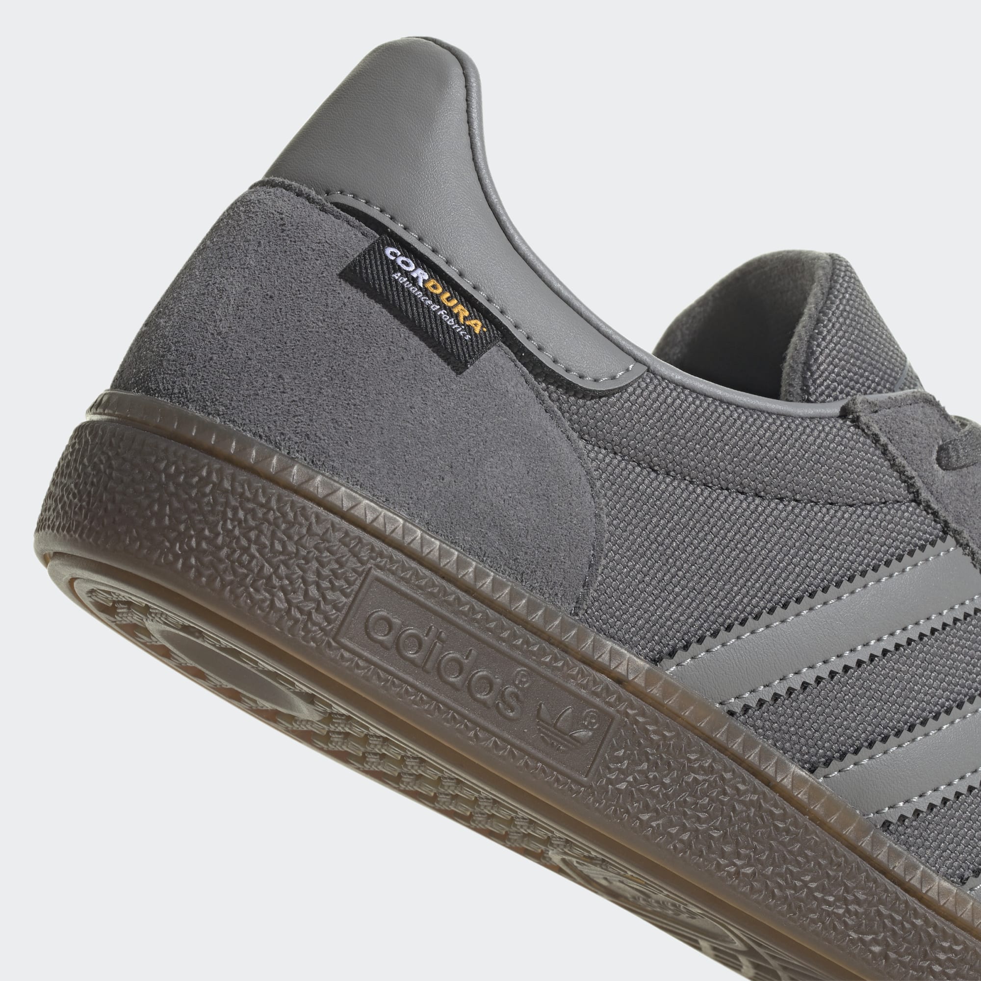 These adidas Handball Spezial Shoes in Grey Six/Grey Three/Gum feature the iconic Spezial design and cushioning, while the CORDURA® fabric upper provides extra durability for everyday wear.