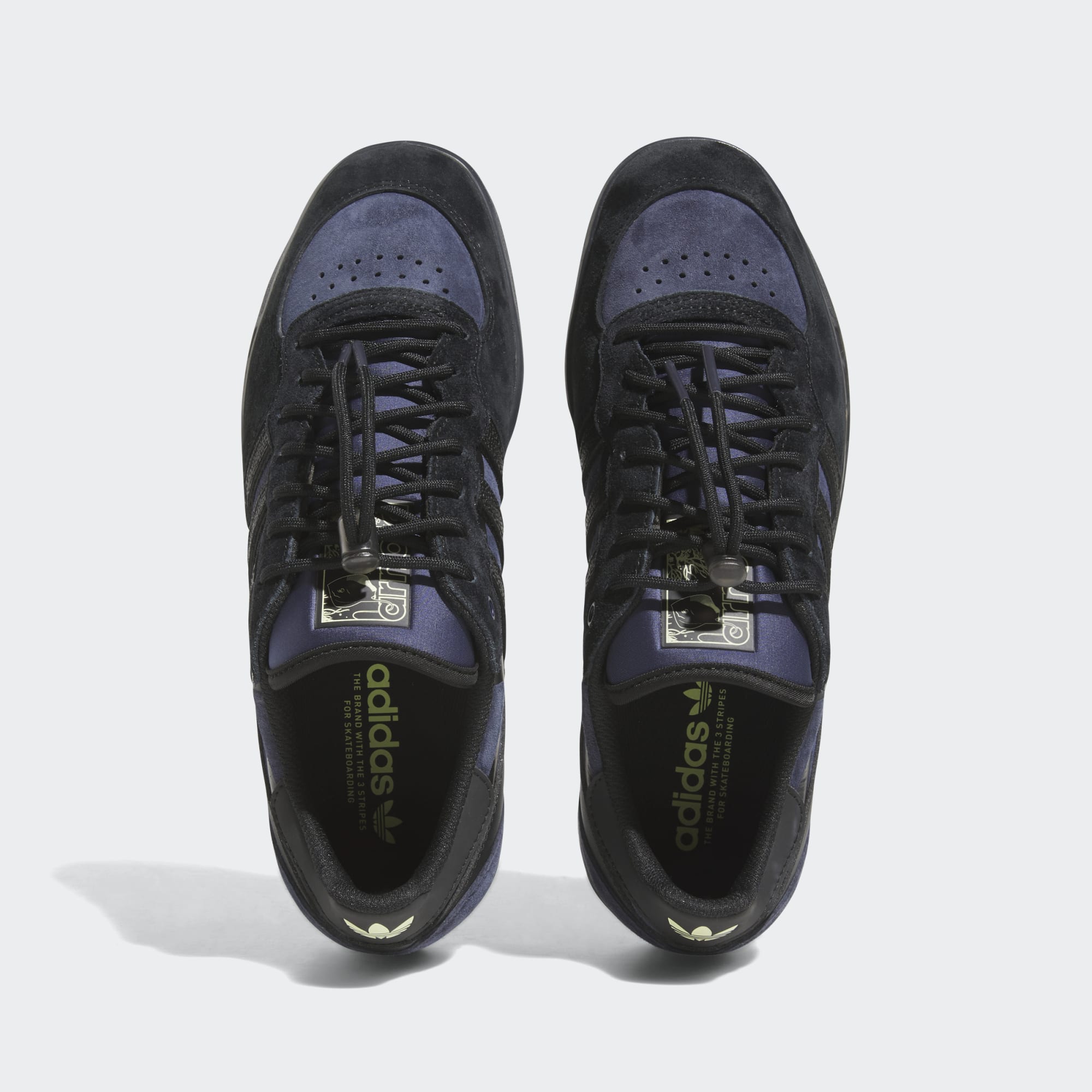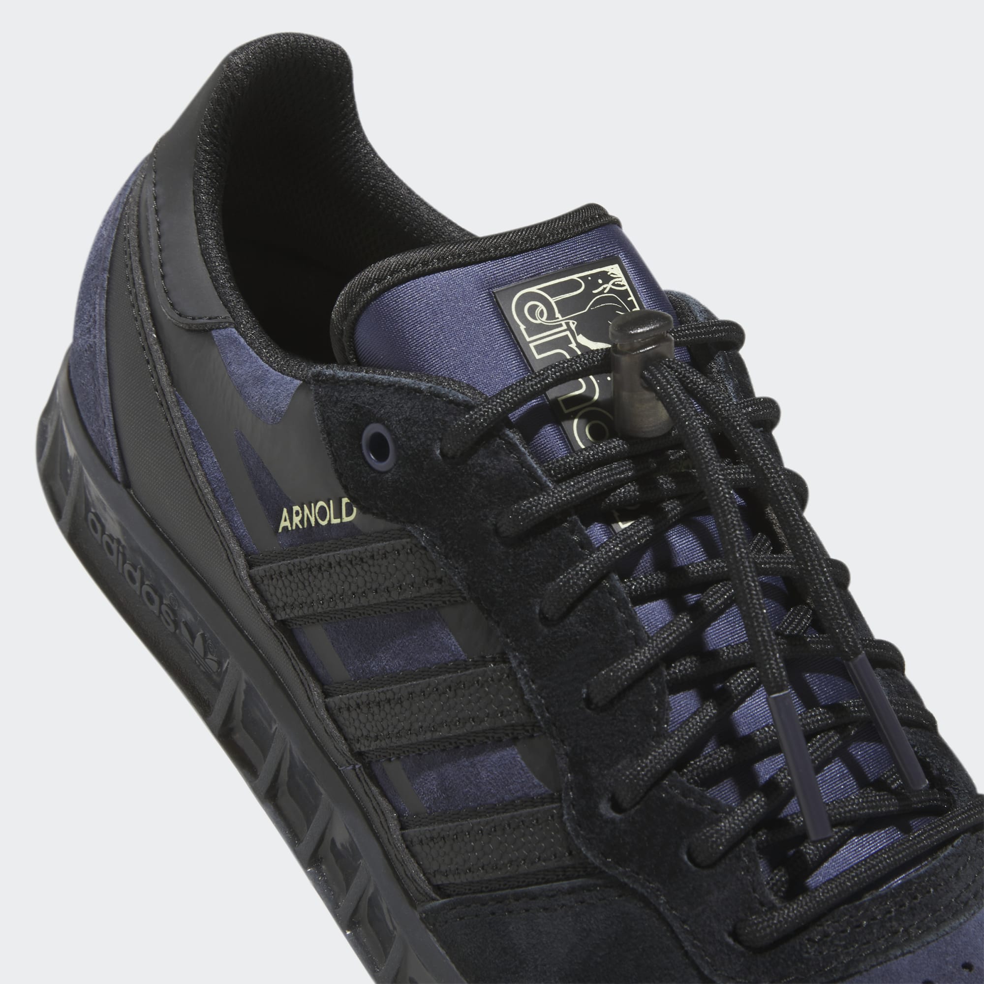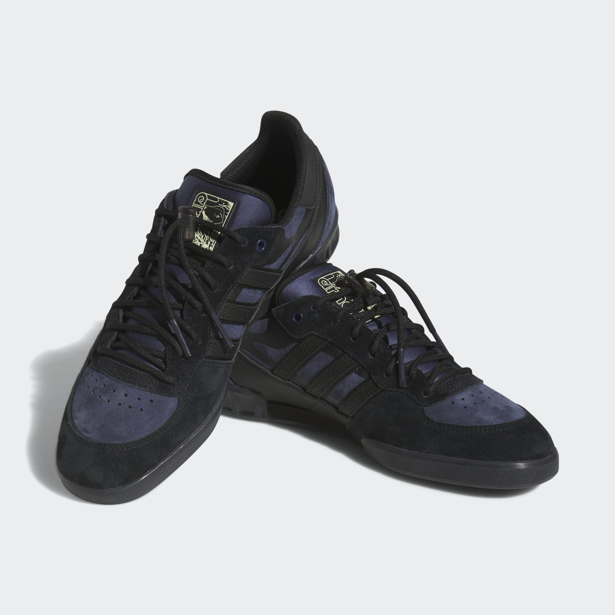 The adidas Handball Top x Mike in Core Black/Shadow Navy/Pulse Yellow draws inspiration from Mike Arnold's unconventional skating style, merging two distinct realms to form a fresh creation.