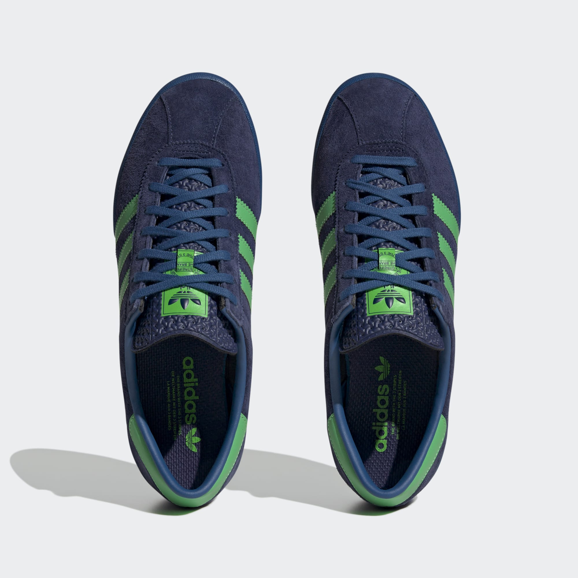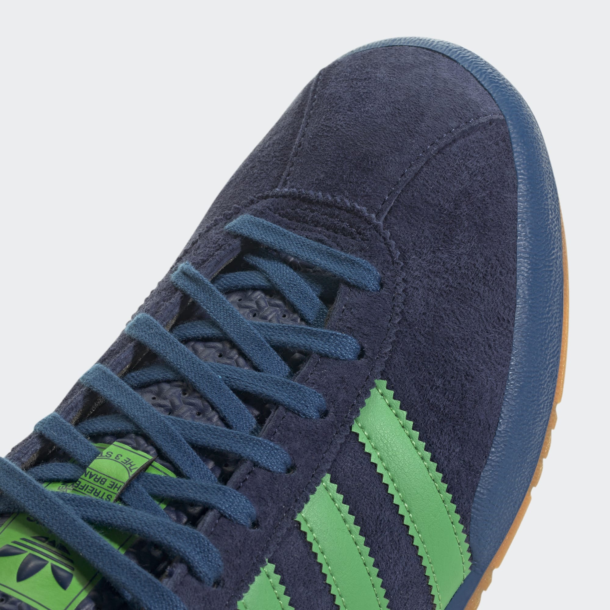 These adidas Jeans Shoes in Dark Blue/Pantone/Pantone are a modern take on a vintage design, drawing inspiration from a rare model in the adidas archive.