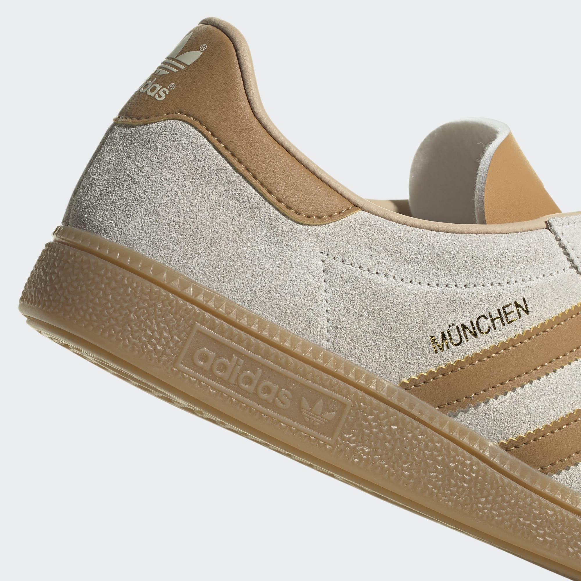 Step out in retro fashion with these Adidas Munchen Shoes in Cream White/Mesa/Gum.