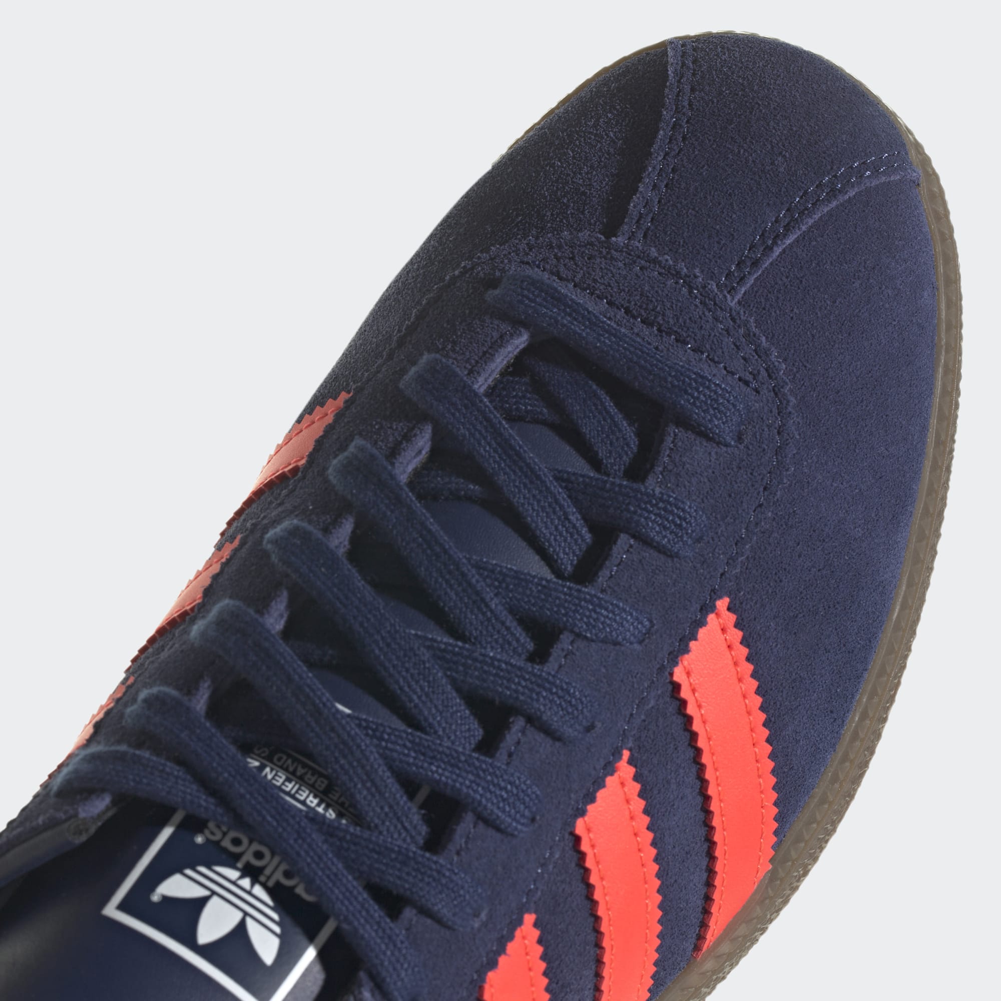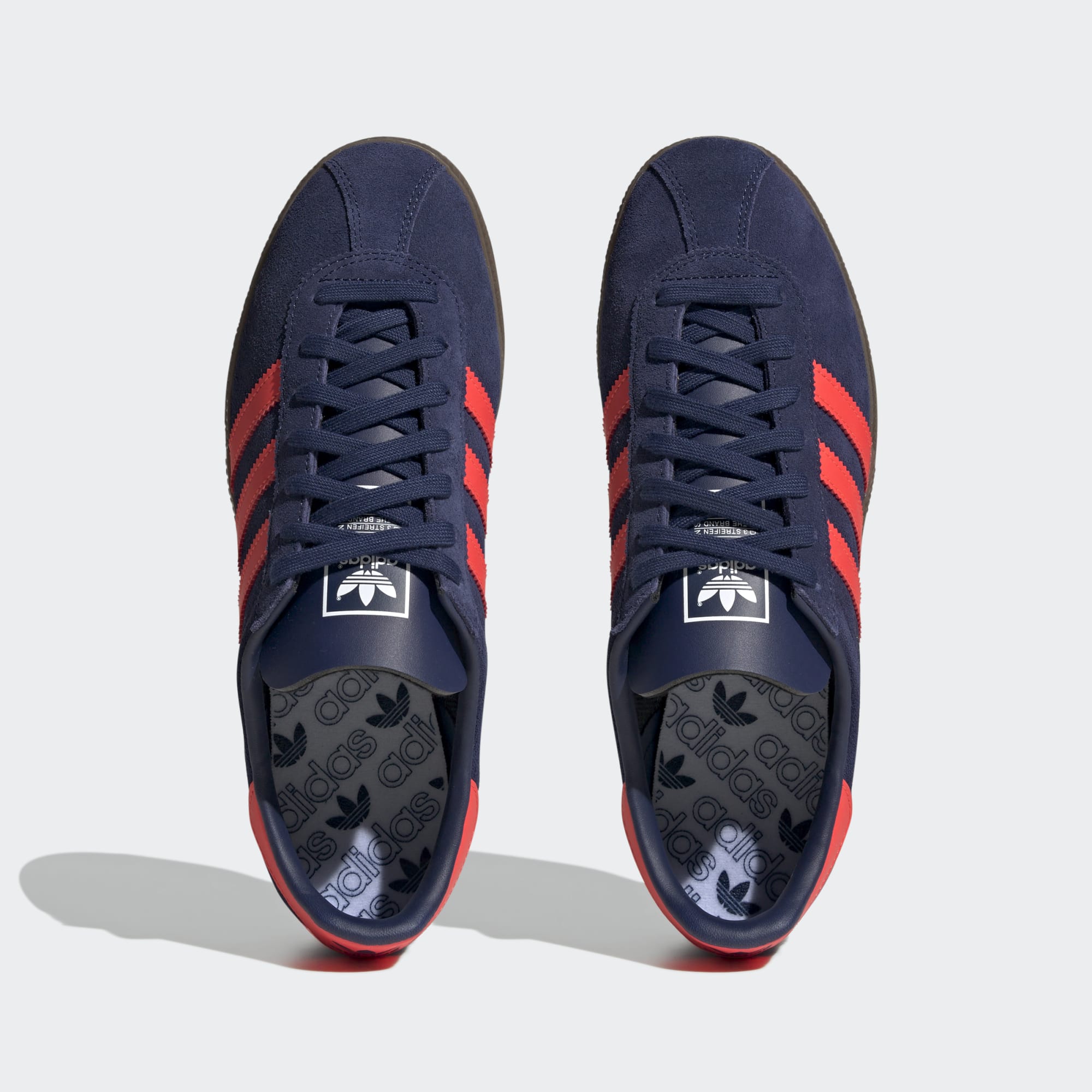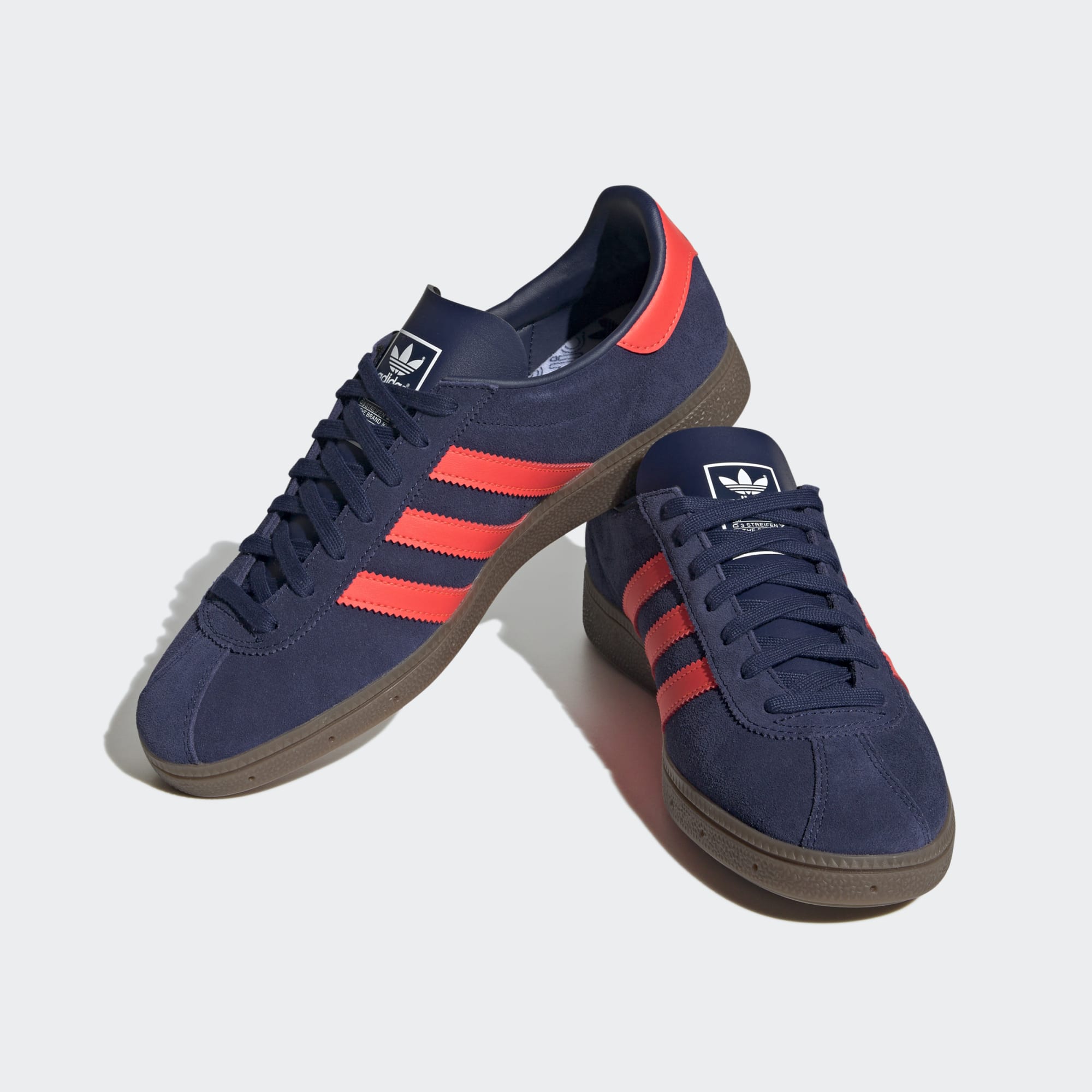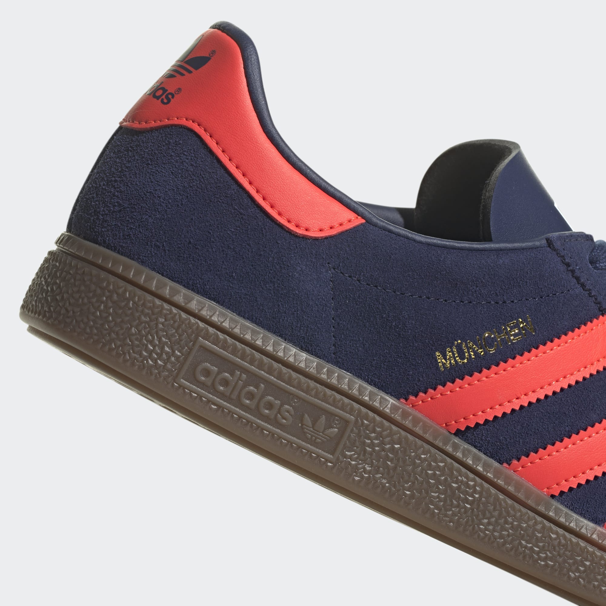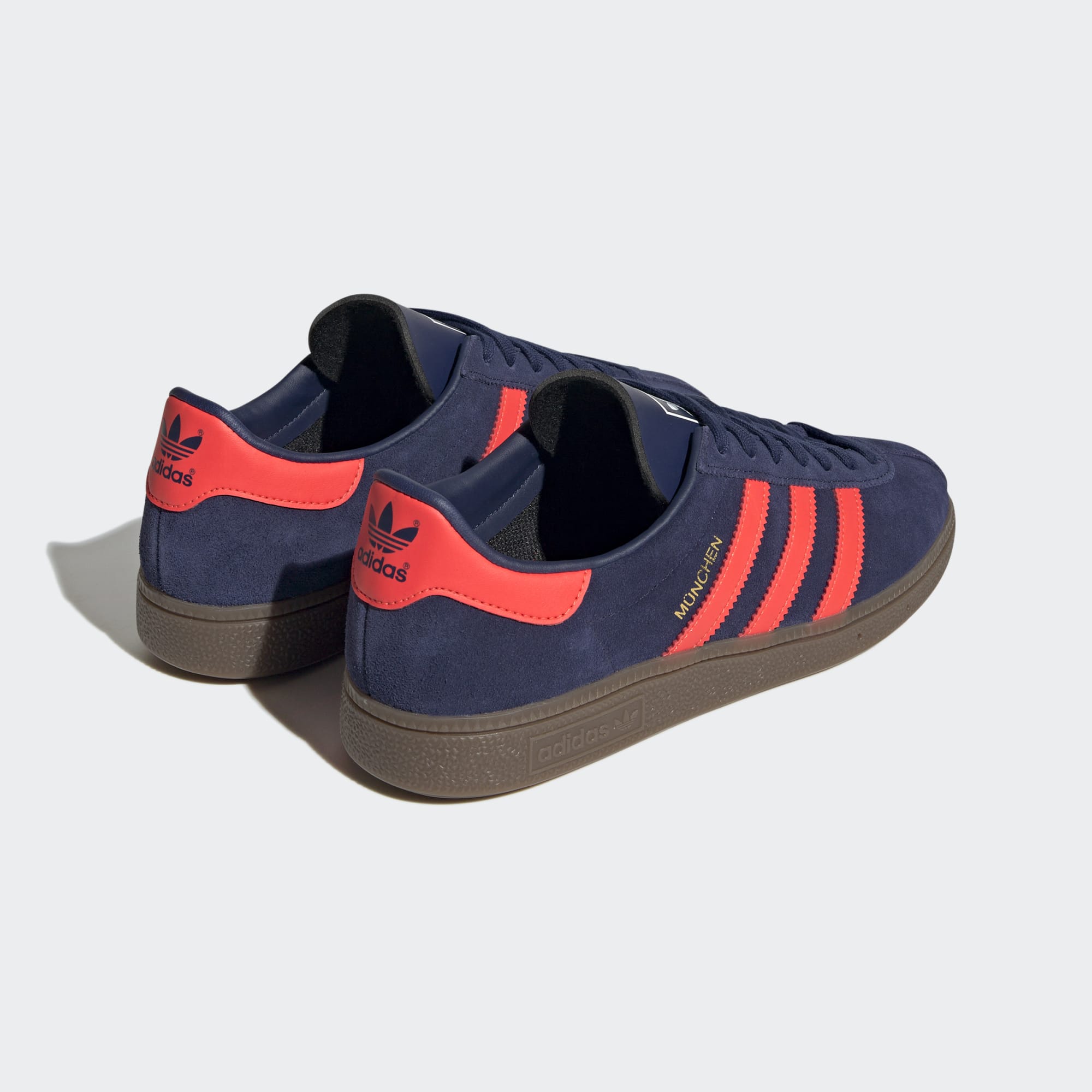 Step out in retro style with the adidas Munchen Shoes in Dark Blue/Solar Red/Gum.