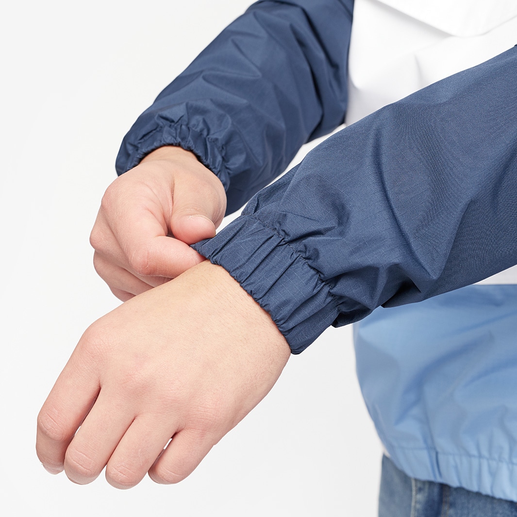 Its zip closure and drawstring hood ensure easy on and off, allow you to control your exposure to the elements, and offer up extra coverage when desired, while the elasticated cuffs and hem gently hold the fit in place as you move for an optimised fit.