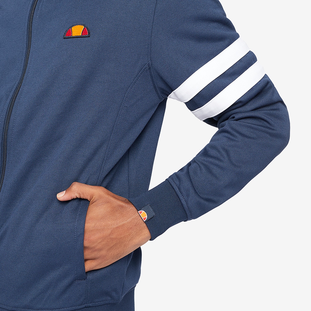 The Roma Track Top features stylish contrast stripes around the arms, with an Ellesse embroidered lettering and EMB badge on the chest.