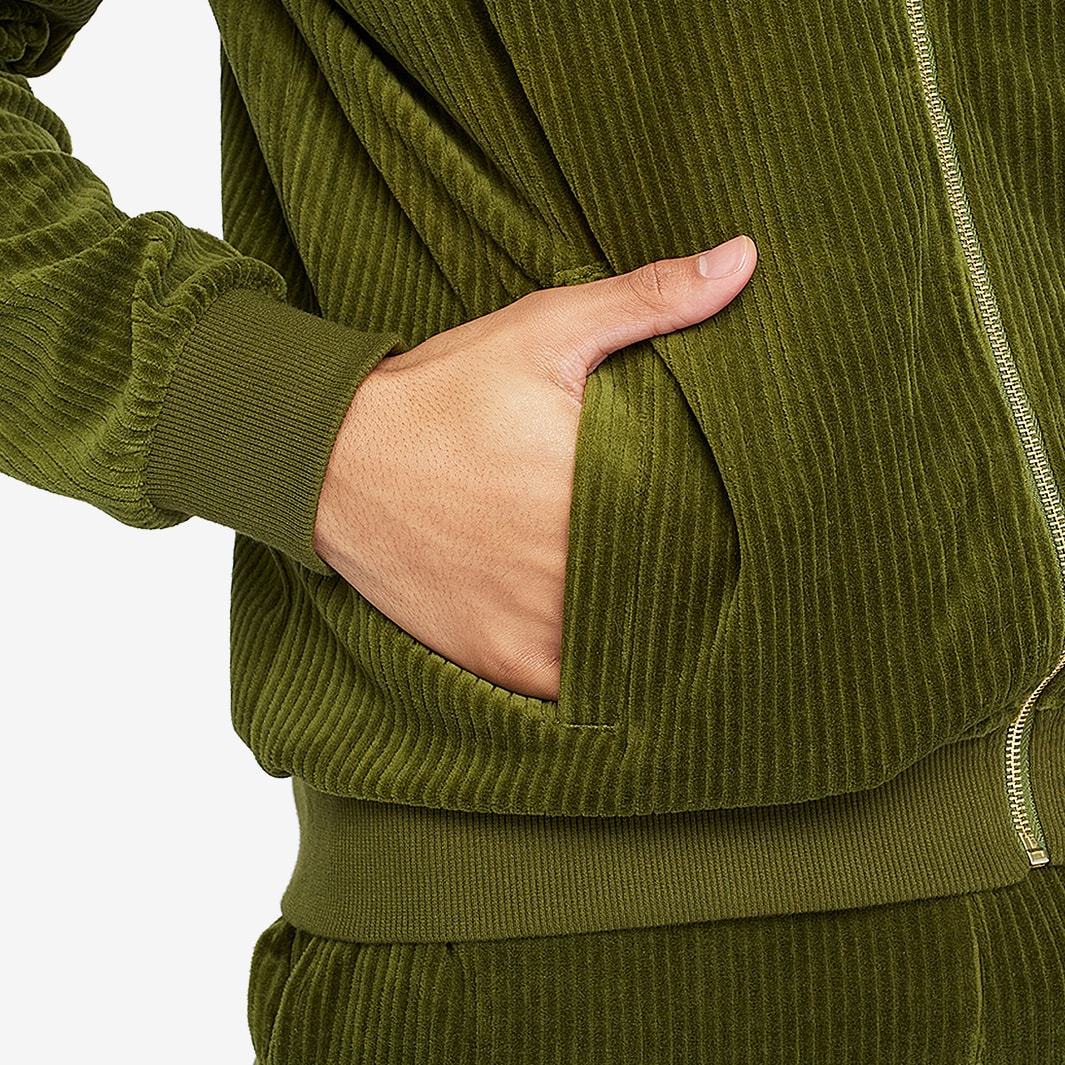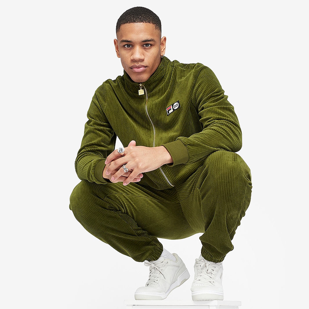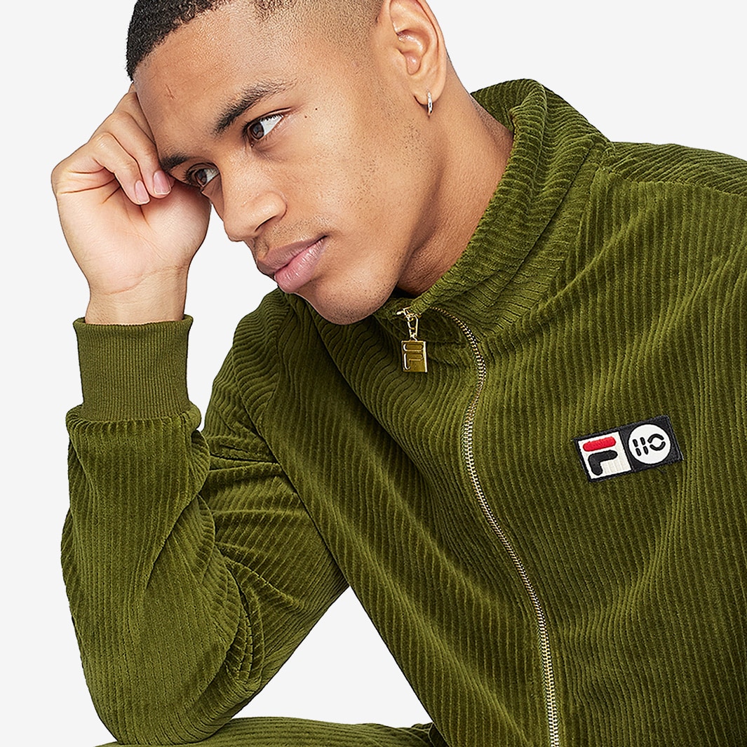 The FILA Heritage Soter Velour Track Jacket in Chive will look the part anywhere, showing off archive design elements on soft, comfy corduroy-esque velour fabrics.