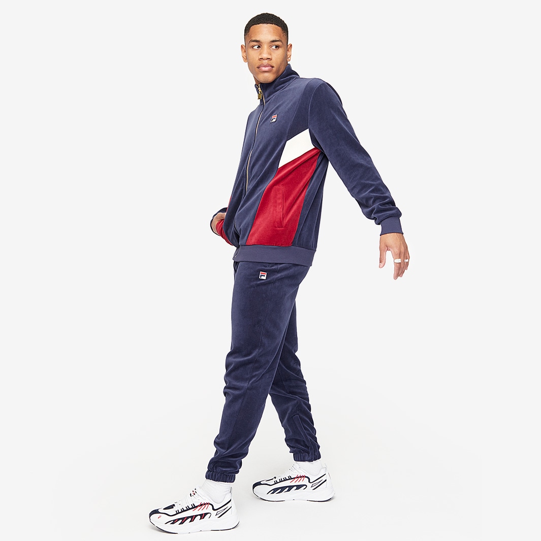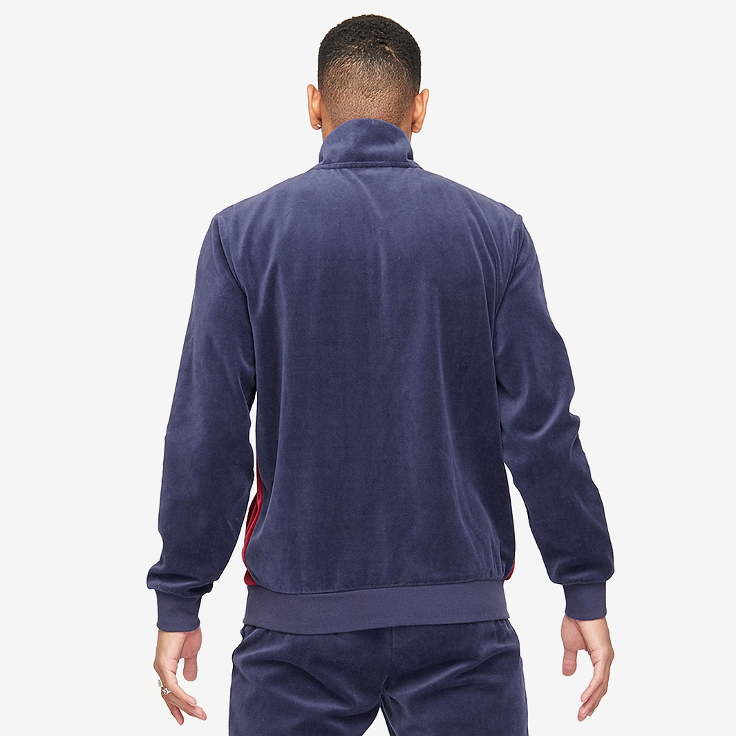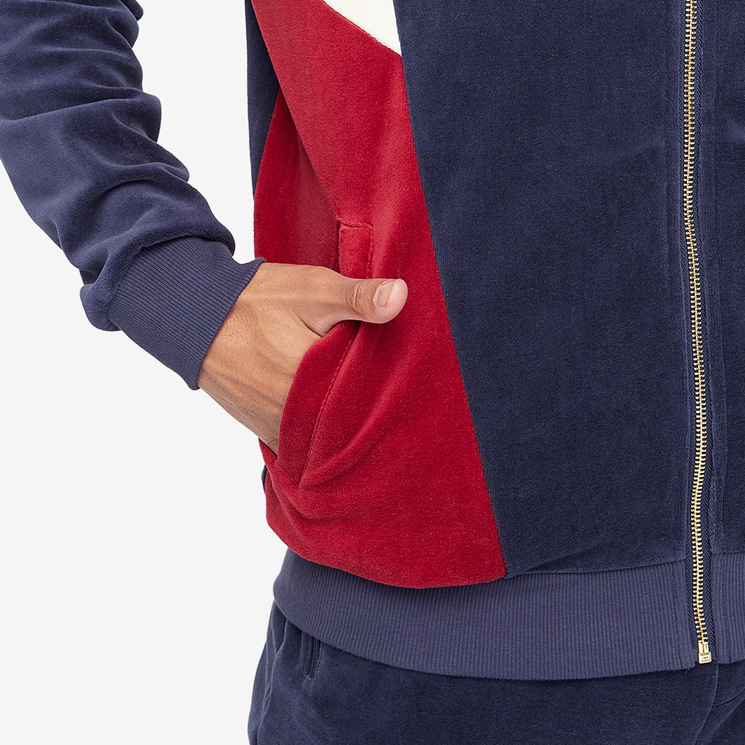 Make a statement on the streets with the FILA Heritage Lane Velour Track Top in Peacoat, Rhubarb and Whisper White, the track jacket featuring contrasting side panels, a gold zip, and an iconic FILA logo on the chest for a touch of brand style to complete your look.