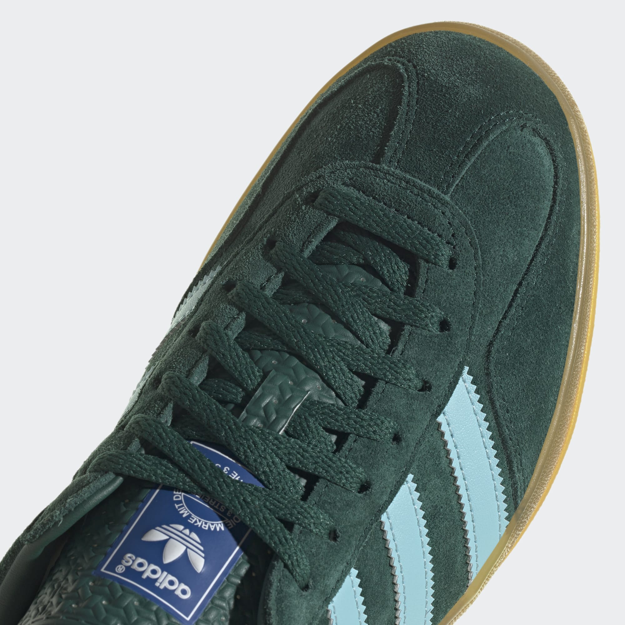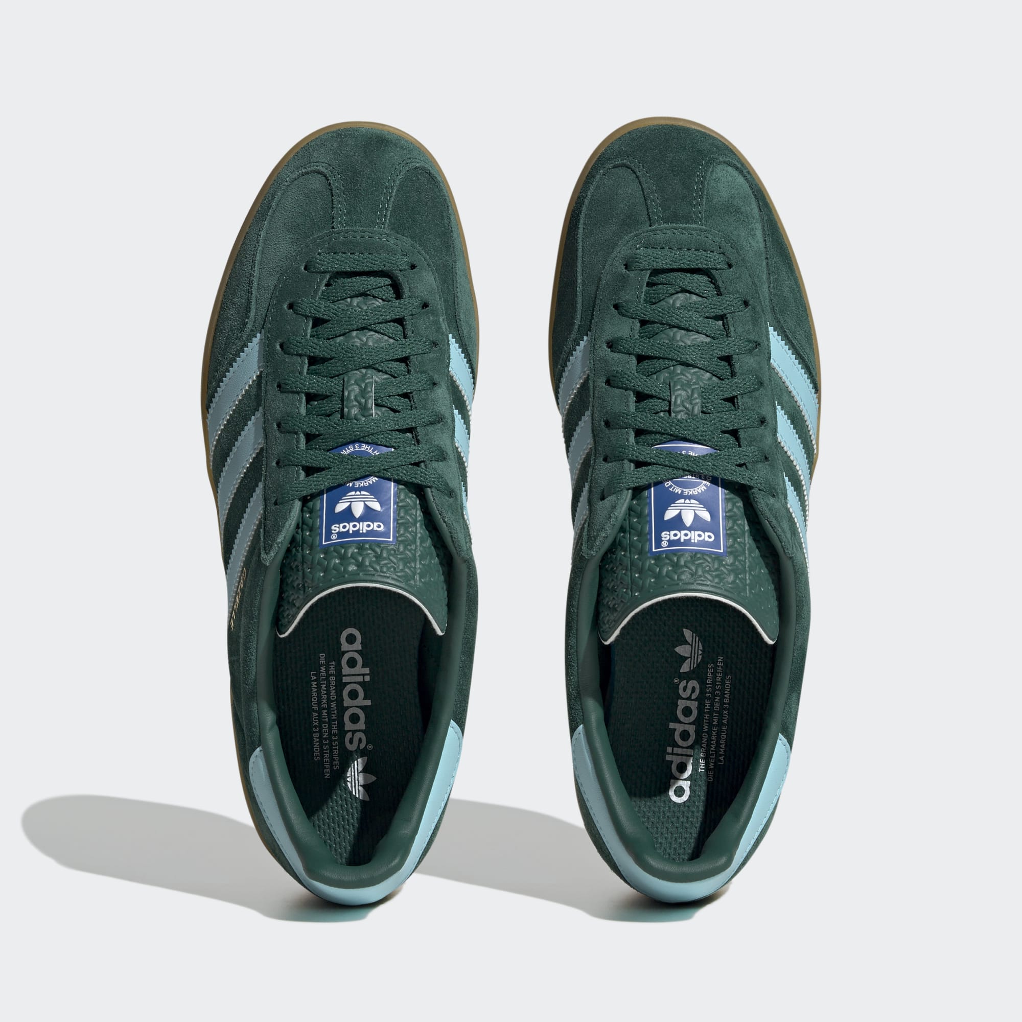 This take on the Gazelle Indoor in Collegiate Green/Hazy Sky/Victory Gold looks to further broaden their appeal. A colourful leather upper with contrasting 3-Stripes sits atop a translucent wraparound gum outsole for a distinctive look.