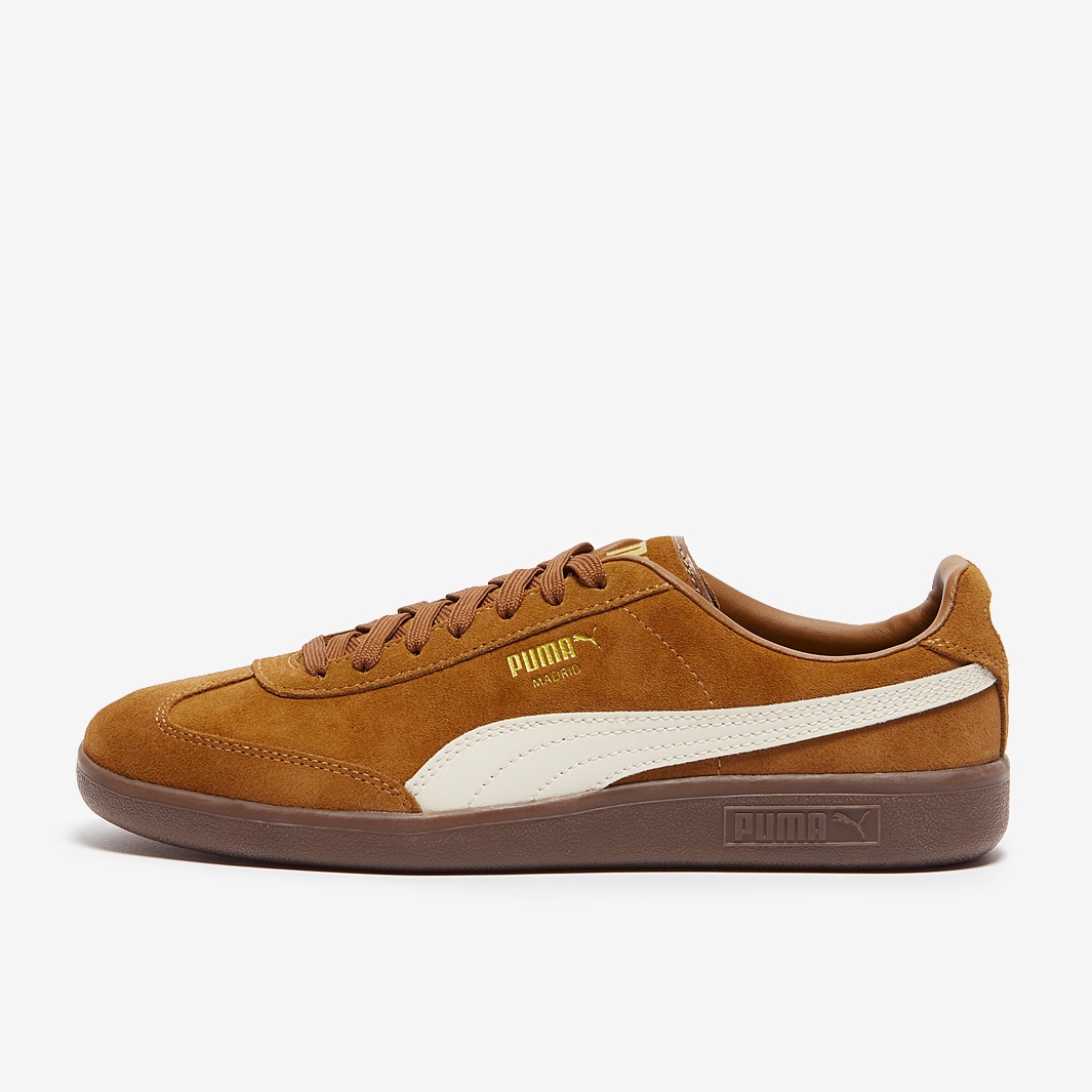 The Puma Madrid Suede in Partridge pulls a design from the archives, taking the classic Madrid silhouette and adding warm style with smooth suede, completing the look with classic foiled PUMA details that are visible from all angles. Showing off the iconic formstrip overlay, this streetwear shoe is ideal for your everyday.