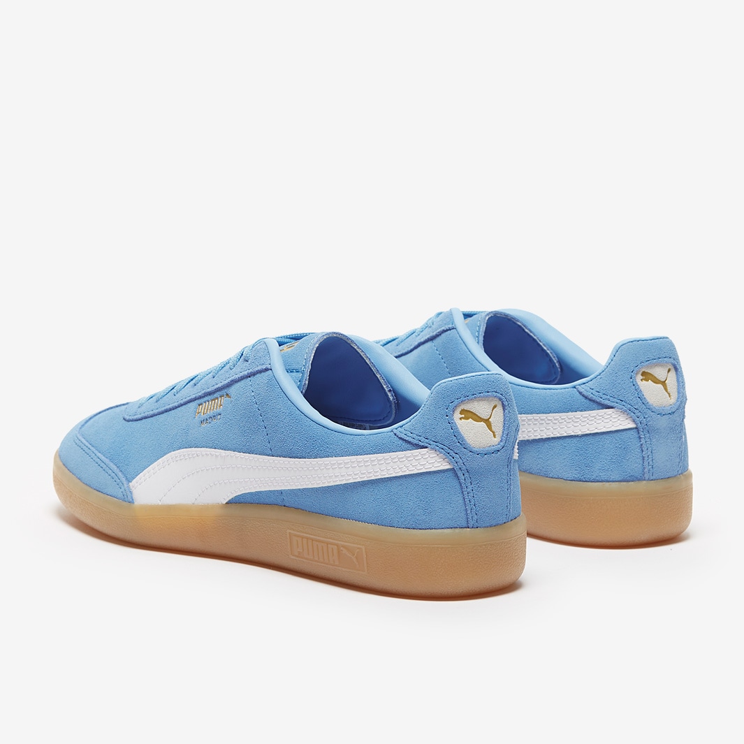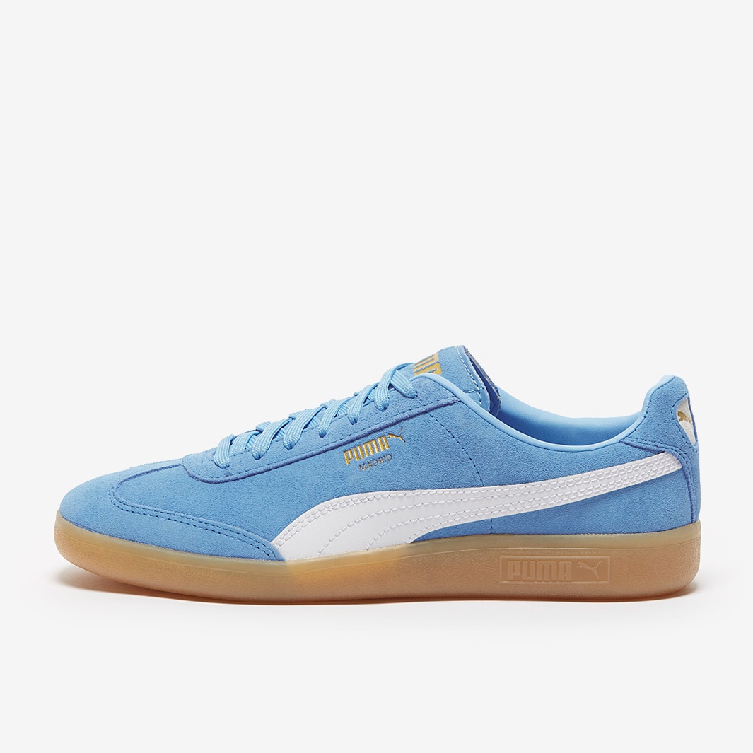 The Puma Madrid Suede in Team Light Blue/Puma White/Pum pulls a design from the archives, taking the classic Madrid silhouette and adding warm style with smooth suede, completing the look with classic foiled PUMA details that are visible from all angles. Showing off the iconic formstrip overlay, this streetwear shoe is ideal for your everyday.